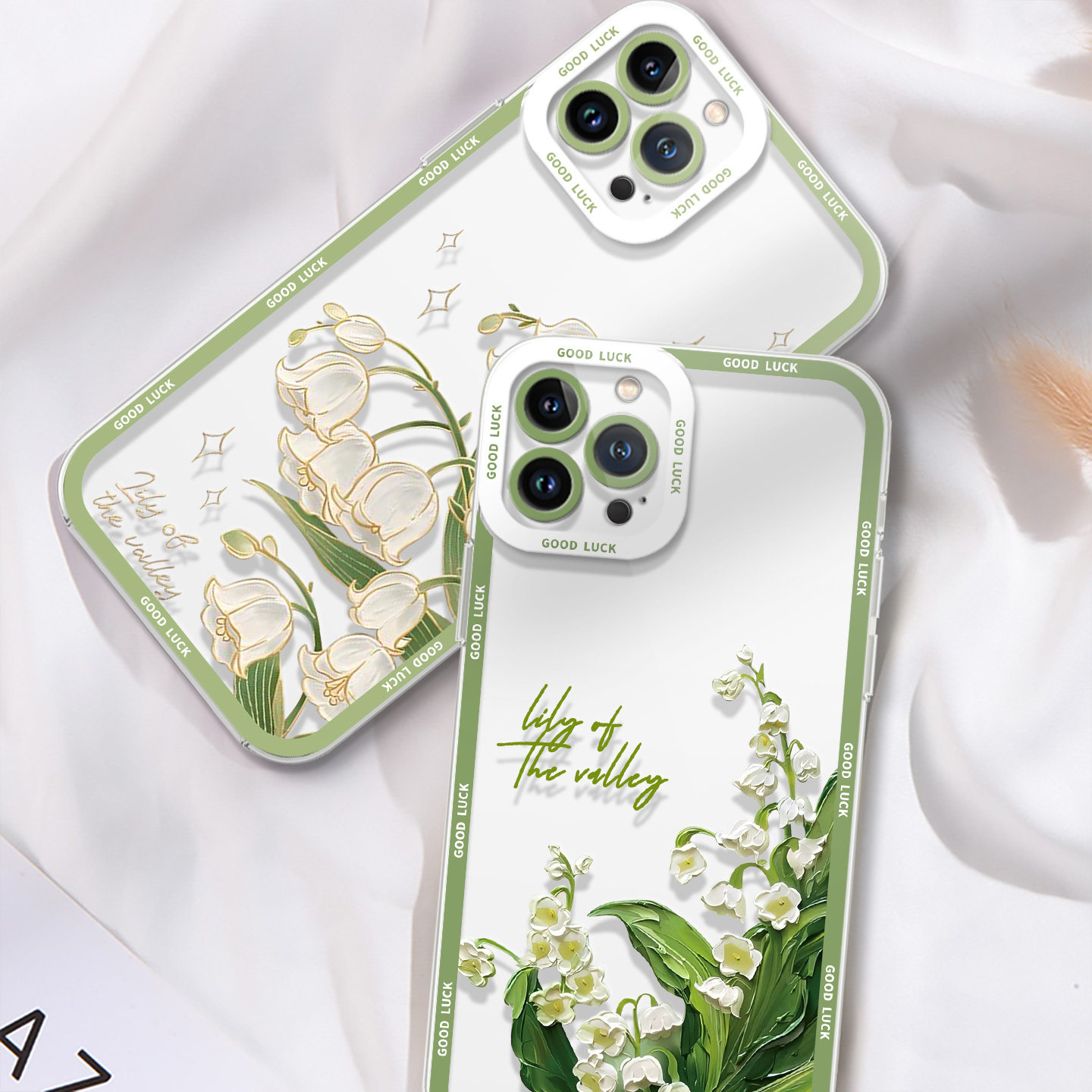 带挂绳铃兰花适用苹果17手机壳适合春天 12mini高级11透明x 15绿色13小清新14plus iPhone16promax新款