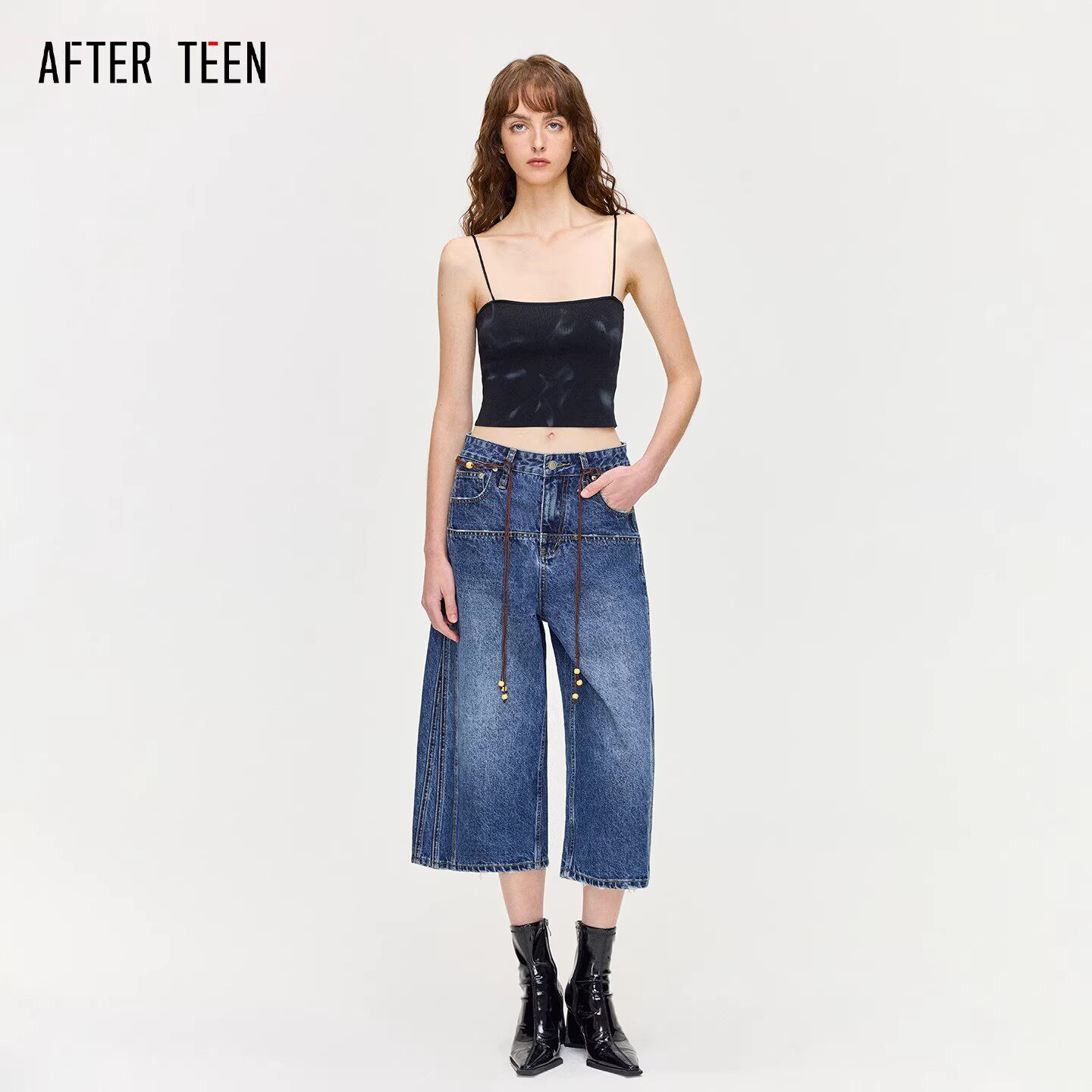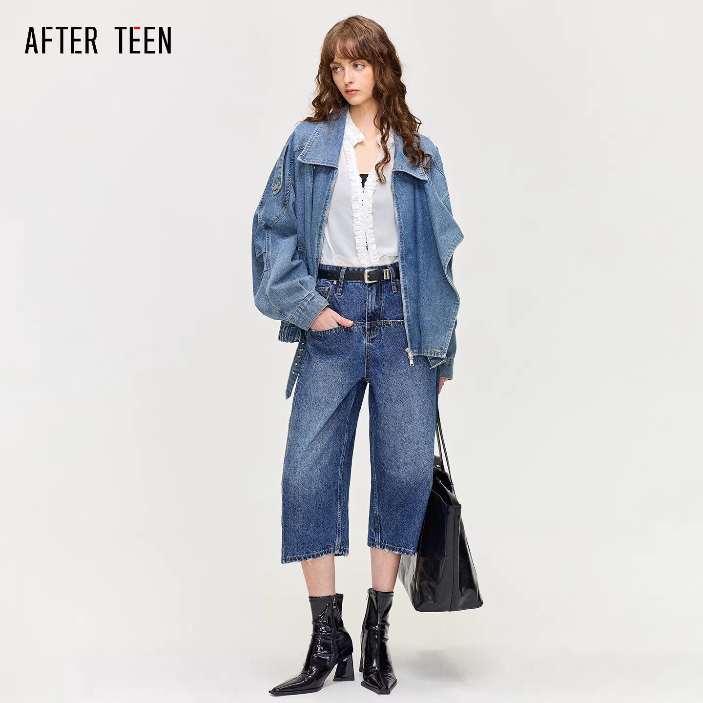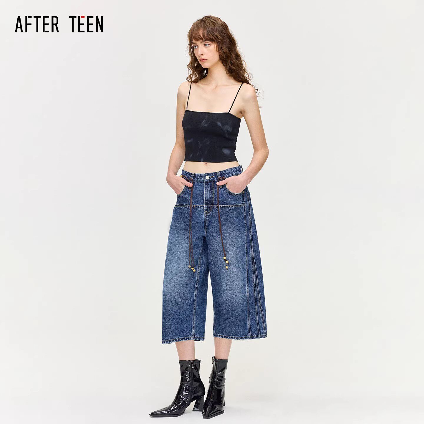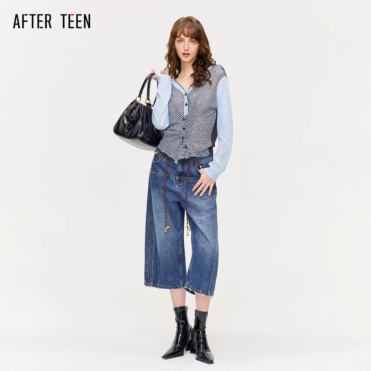 AFTER TEEN「南亚文化|手工质感」编制腰带分割线廓形牛仔中裤