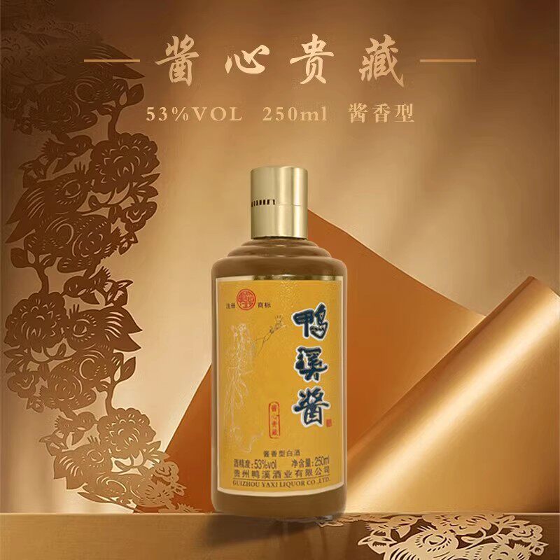 鸭溪窖酱心贵藏53度250ml酱香型白酒小酒半斤装 纯粮食酿造优级酒