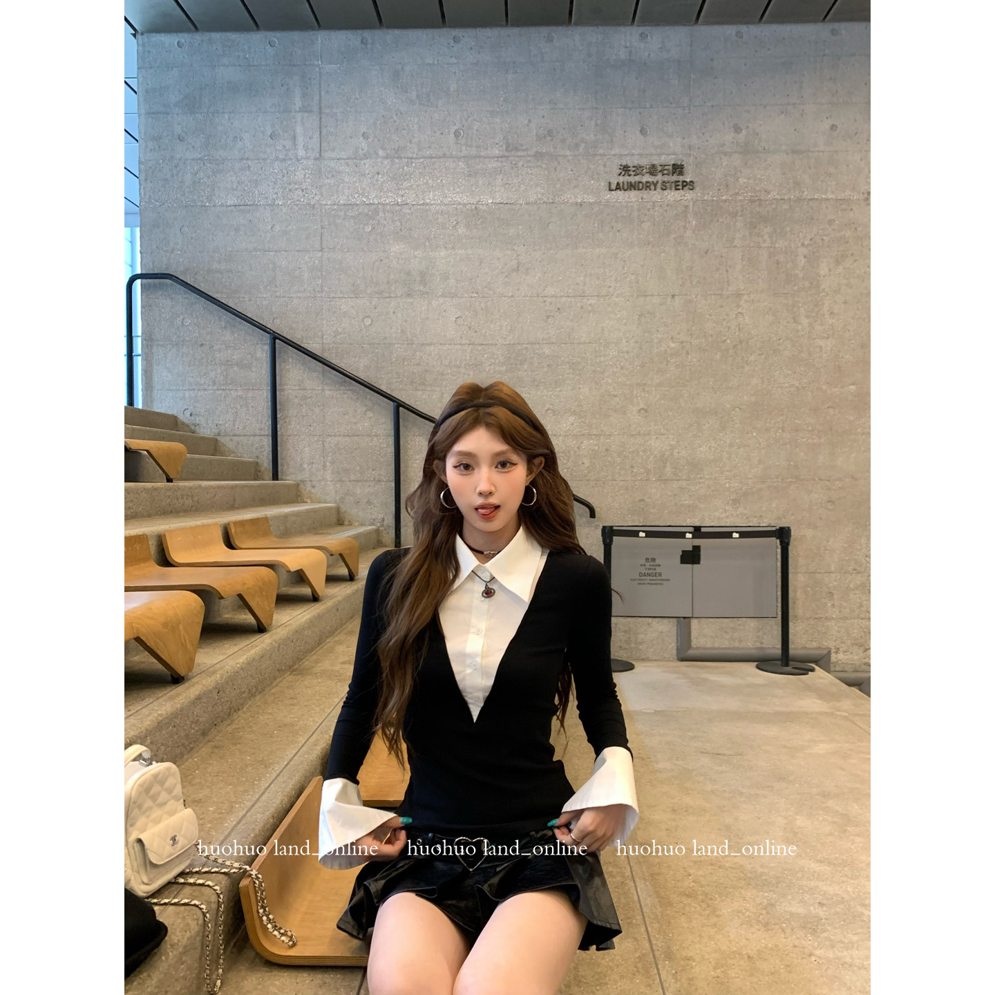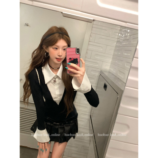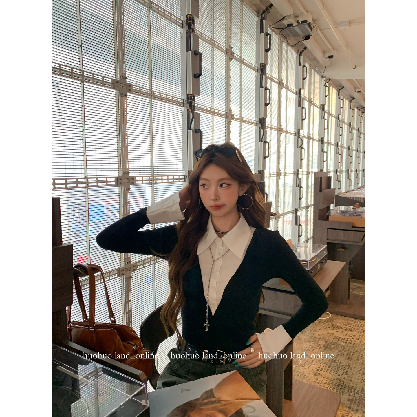 女翻领立体假两件撞色上衣 学院风2026春夏新款 HuoHuo 高智学院