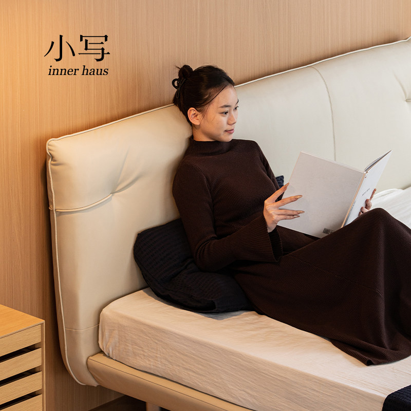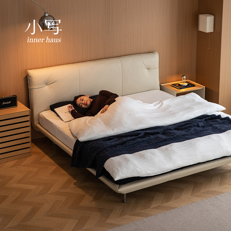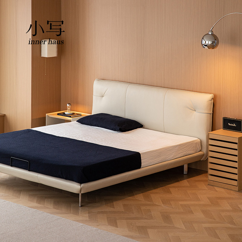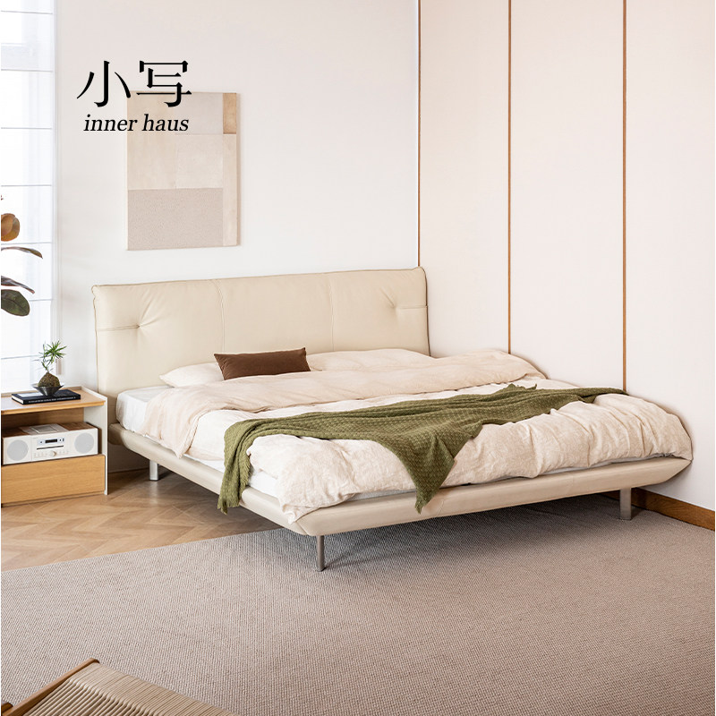 小写inner现代简约纳帕真皮床北欧悬浮1米8双人主卧大床软包床