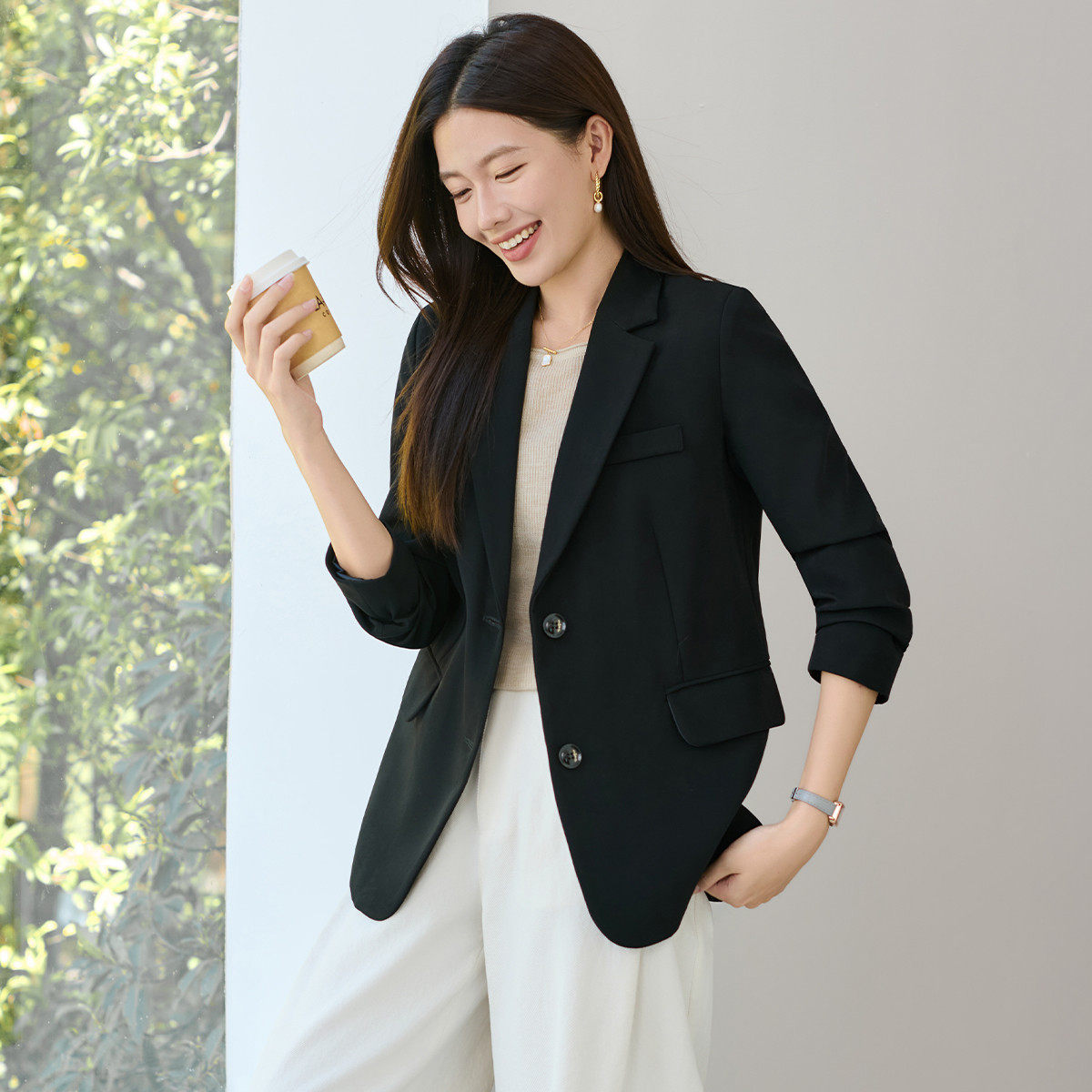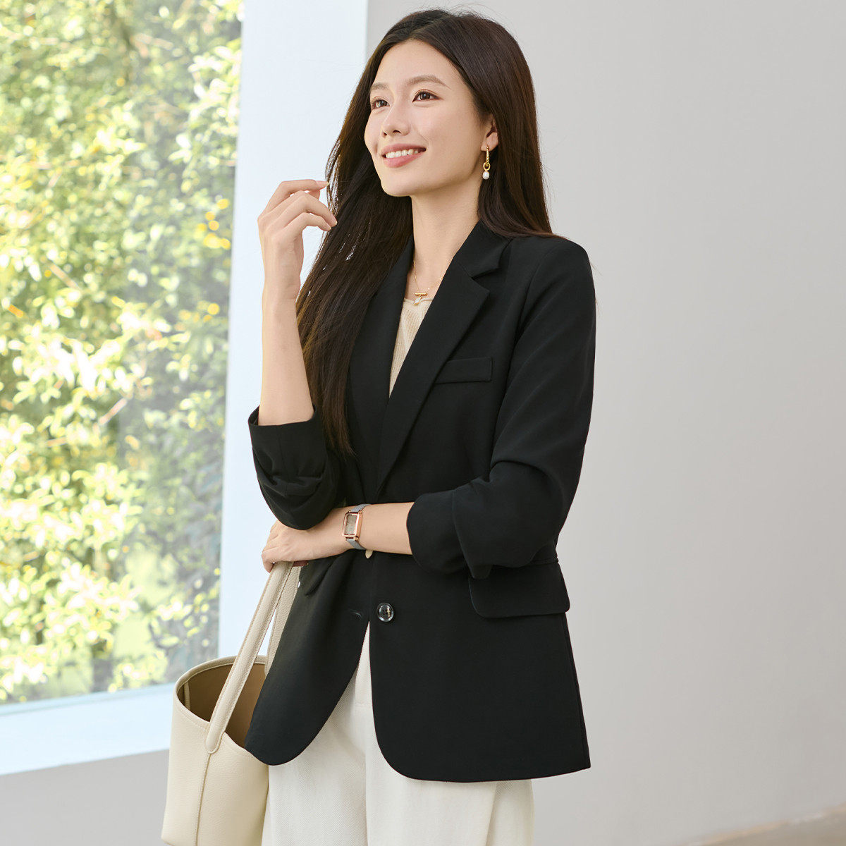 通勤必备百搭日常外穿开衫 外套女春秋季 气质显瘦西装 班尼路时尚