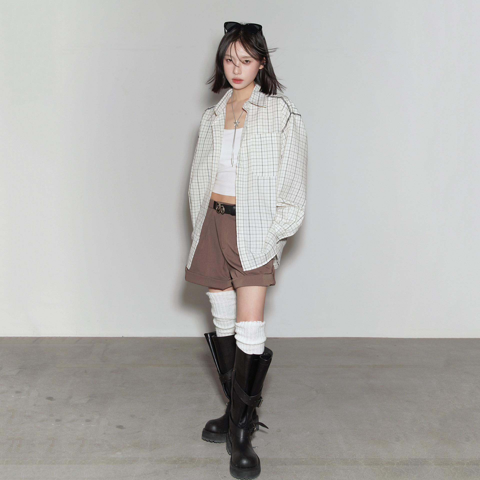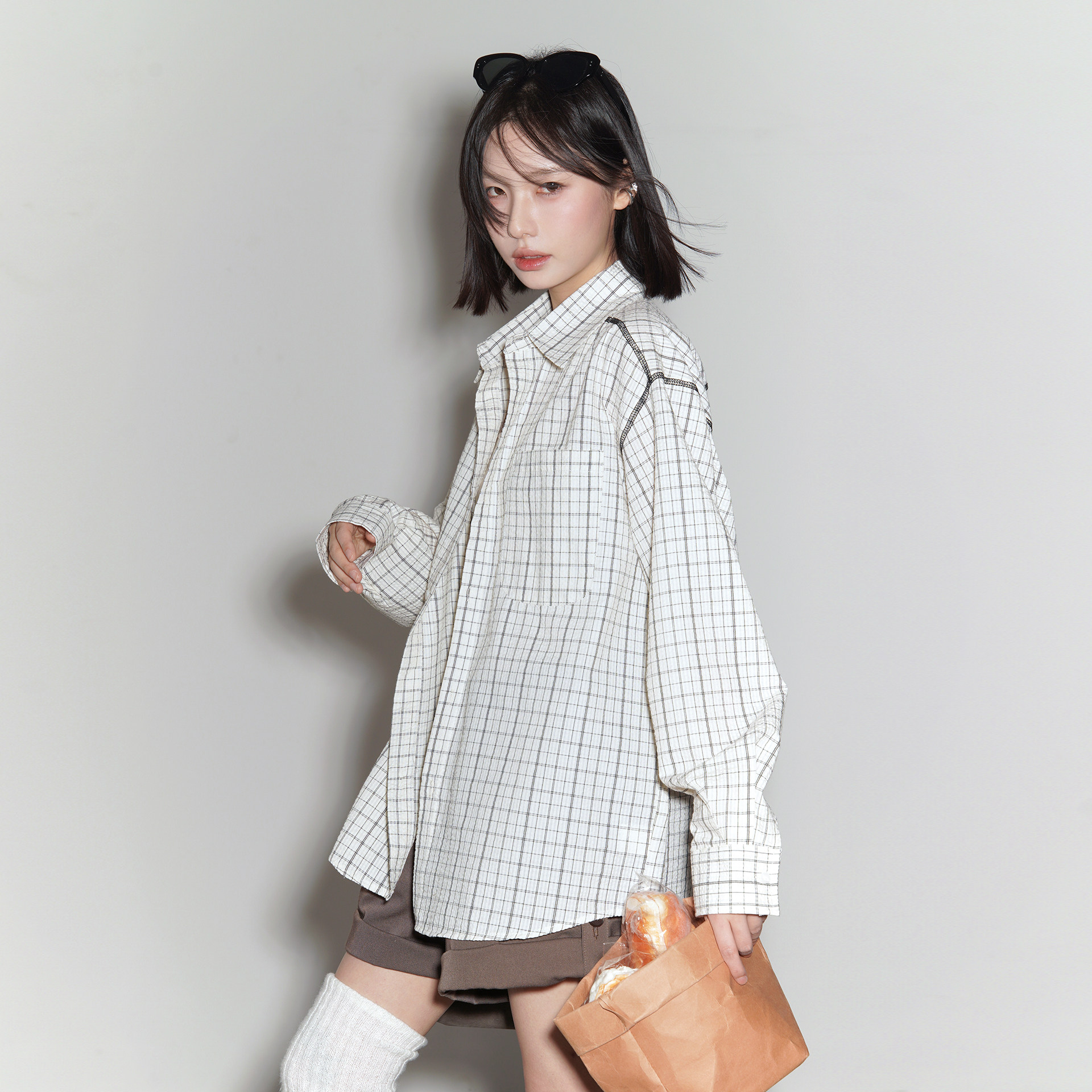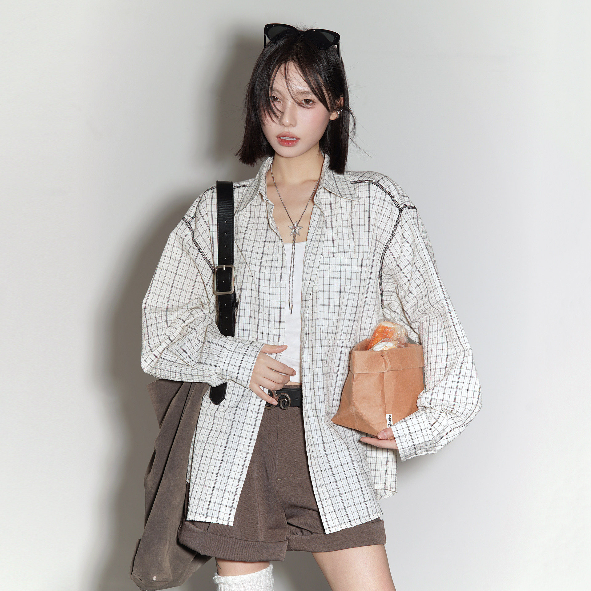 2026新款 万有引力博物馆 女春季 格子衬衫 宽松中性风上衣外套 长袖