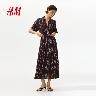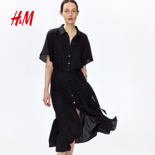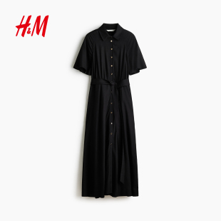 时尚 新款 通勤衬衫 式 连衣裙1217576 HM女装 束腰衬衫 连衣裙2026春季