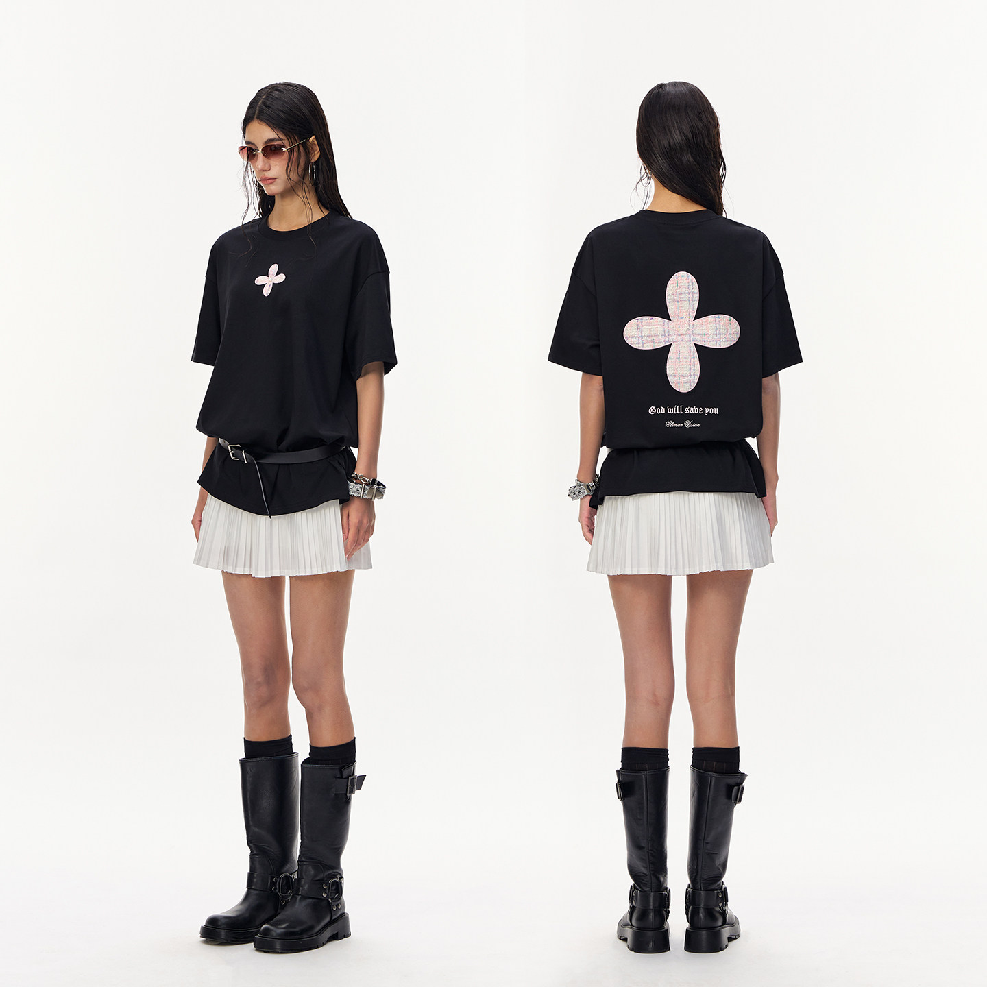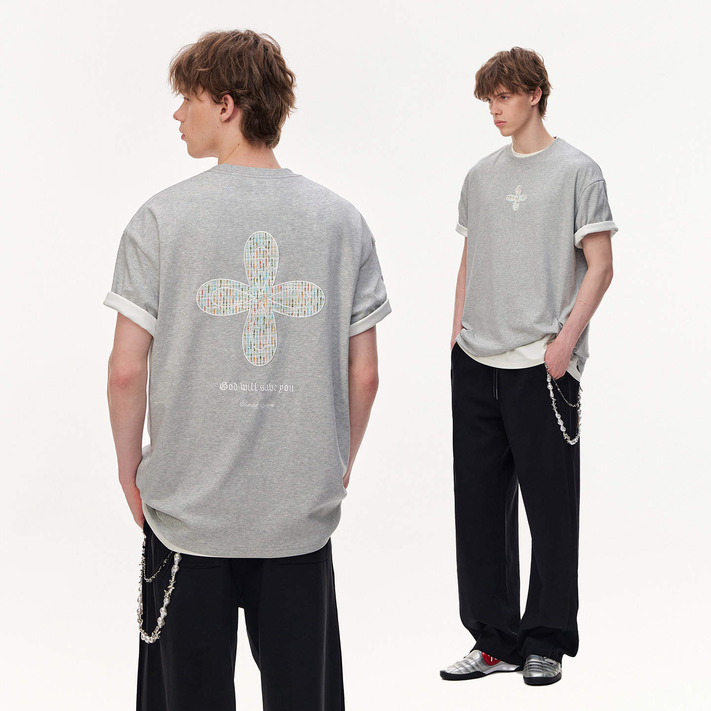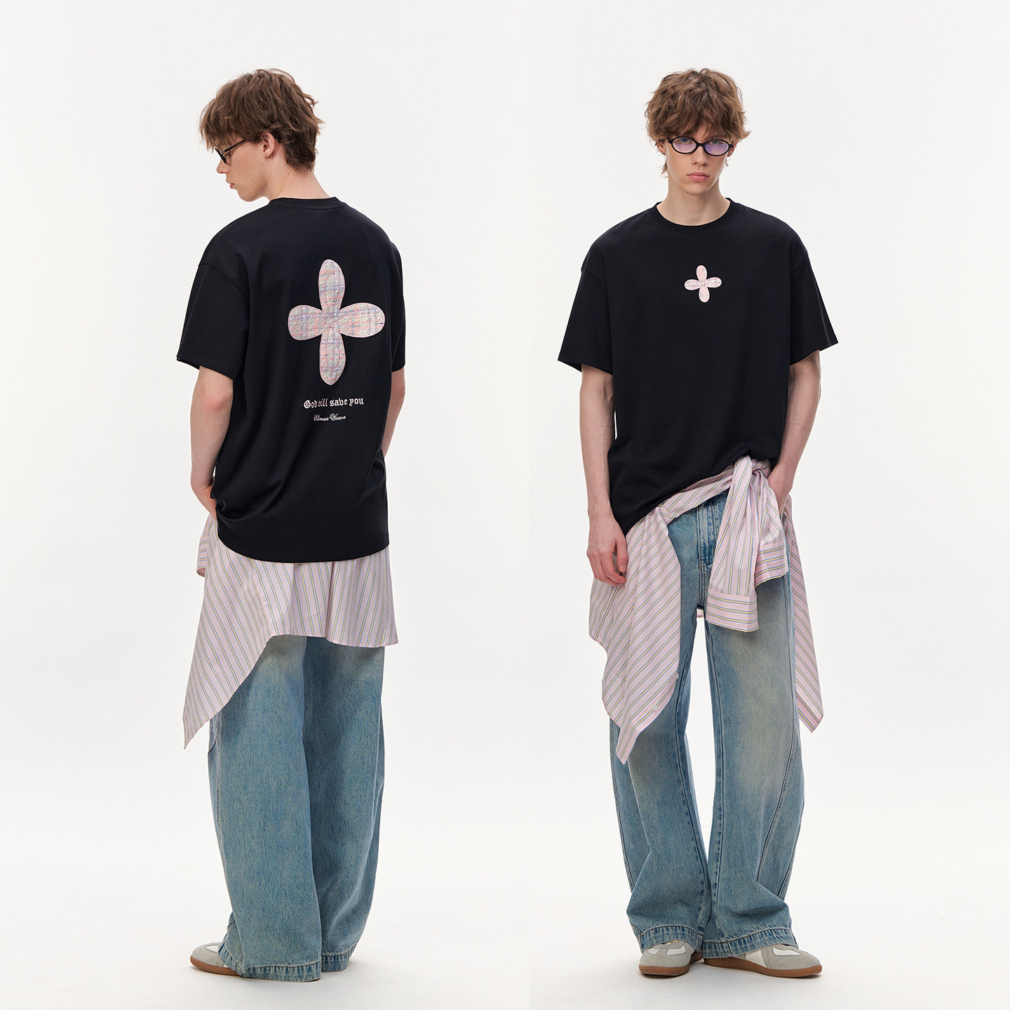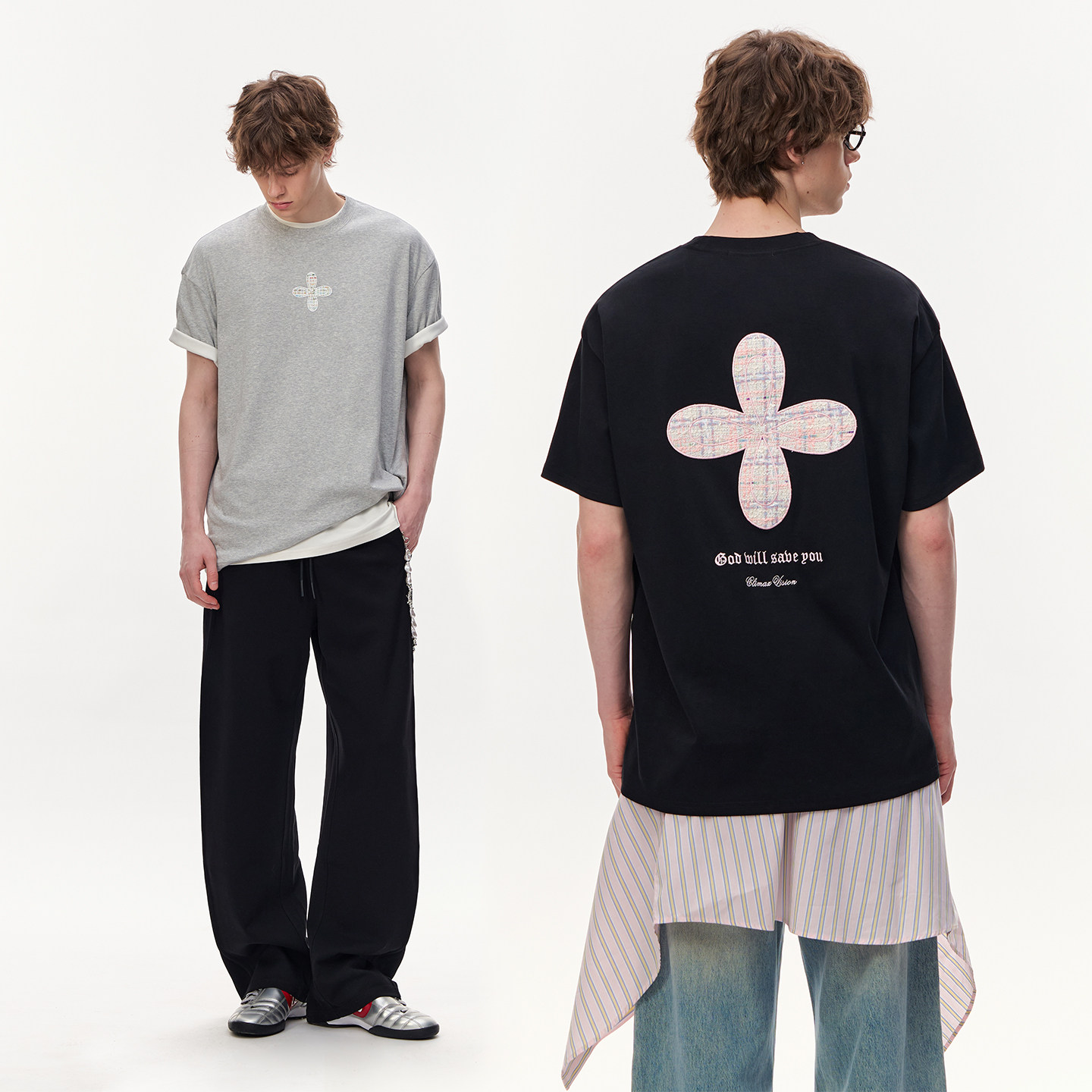 天丝棉小香风十字花贴布绣情侣短袖 触感凉爽 T恤 VISION CLIMAX