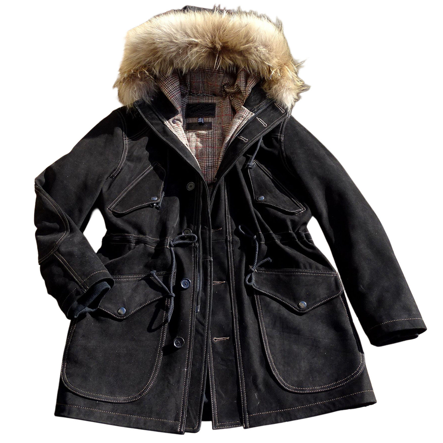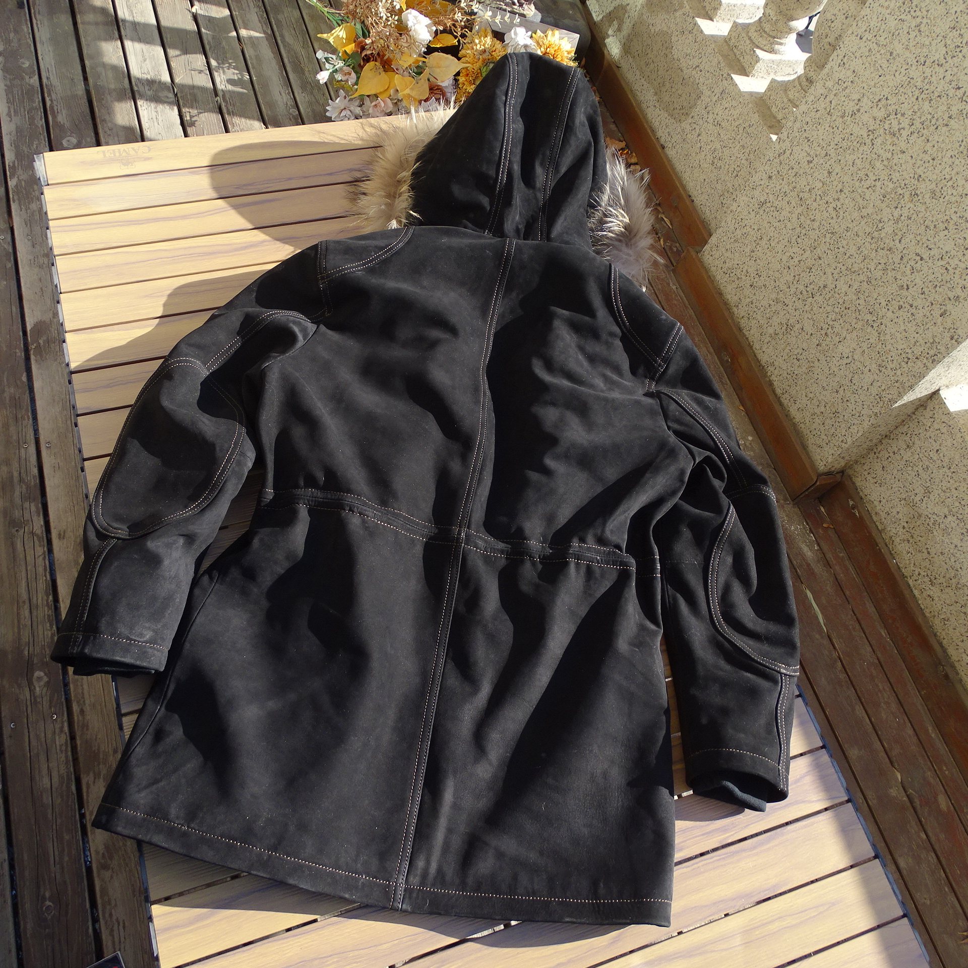 连帽派克大衣真皮衣男女 RL真毛领中长款 26春新 磨砂绒面牛皮