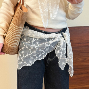 装 子时尚 饰短裙半身裙 提花白色蕾丝网纱屁帘女高级感叠穿配裤 韩版
