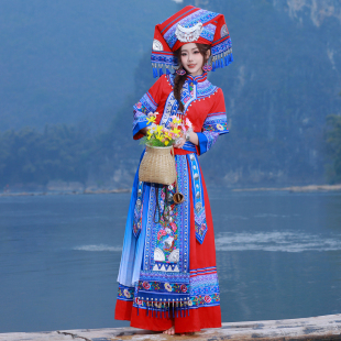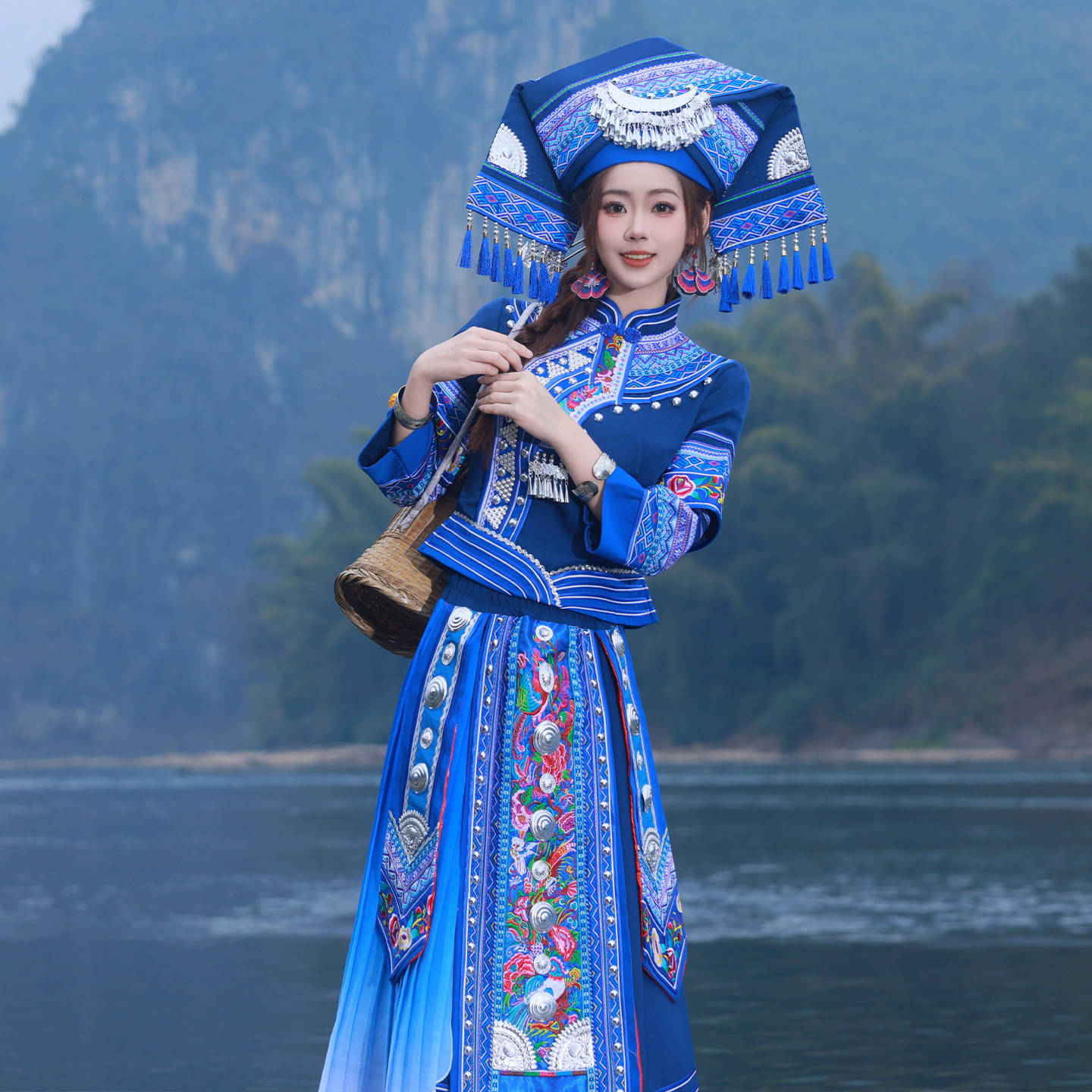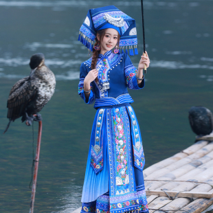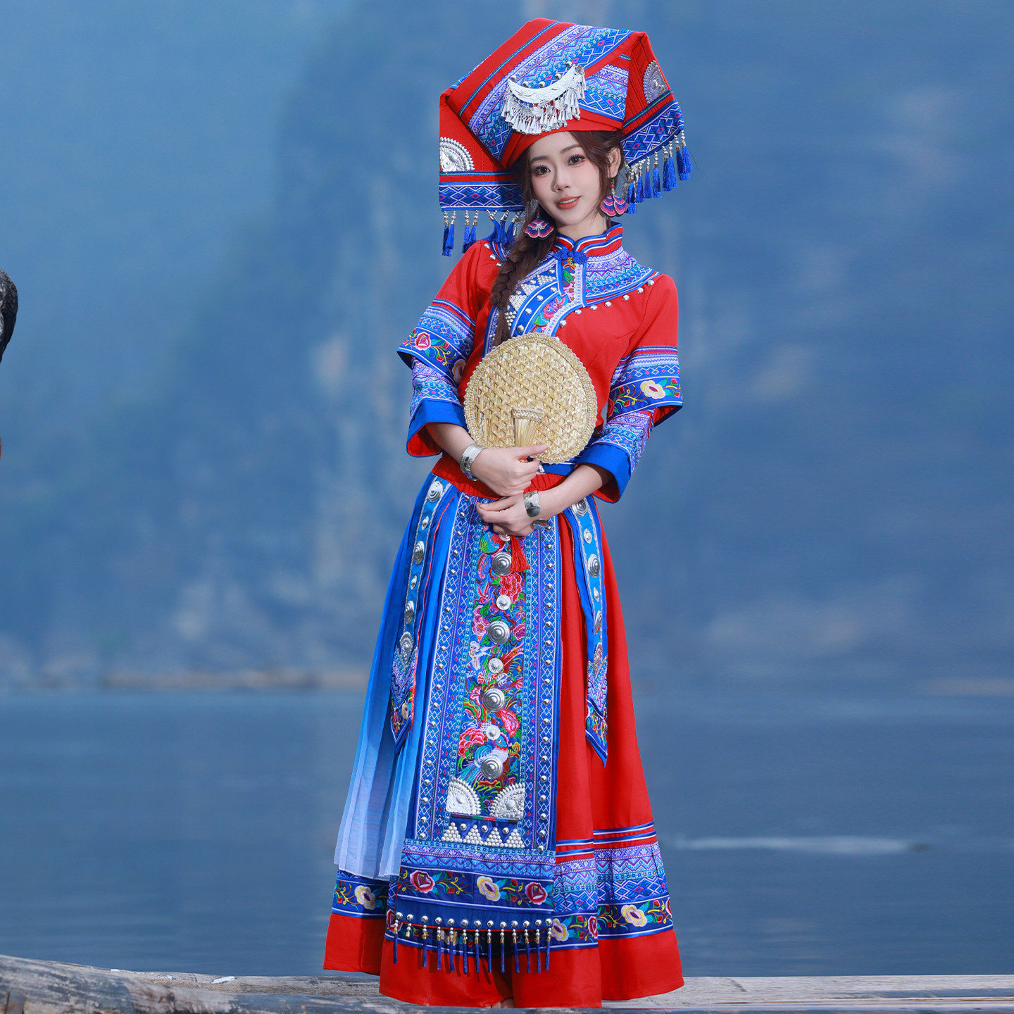 壮锦刺绣演出长裙 成人三月三少数民族服饰女盛装 新款 广西壮族服装