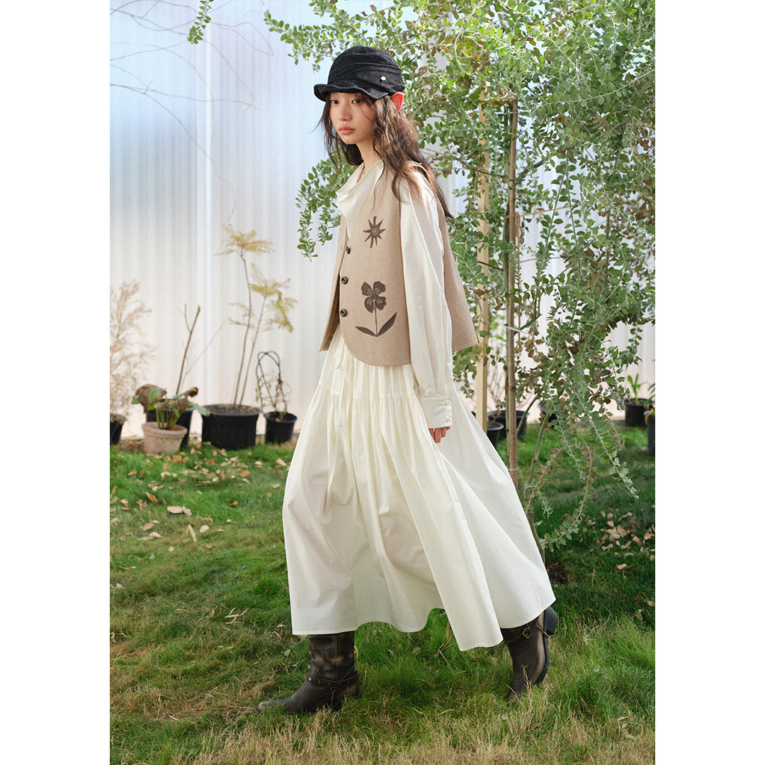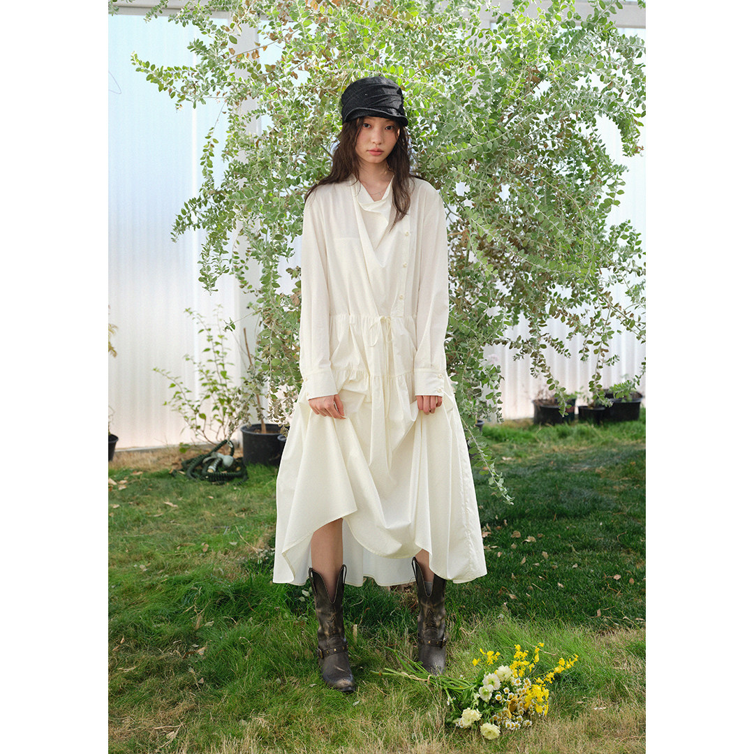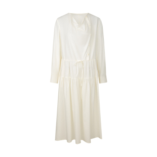 连衣裙女长裙海边度假长款 慵懒荡领白色长袖 裙子春 法式 BLUEerror