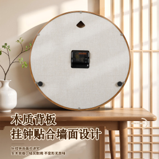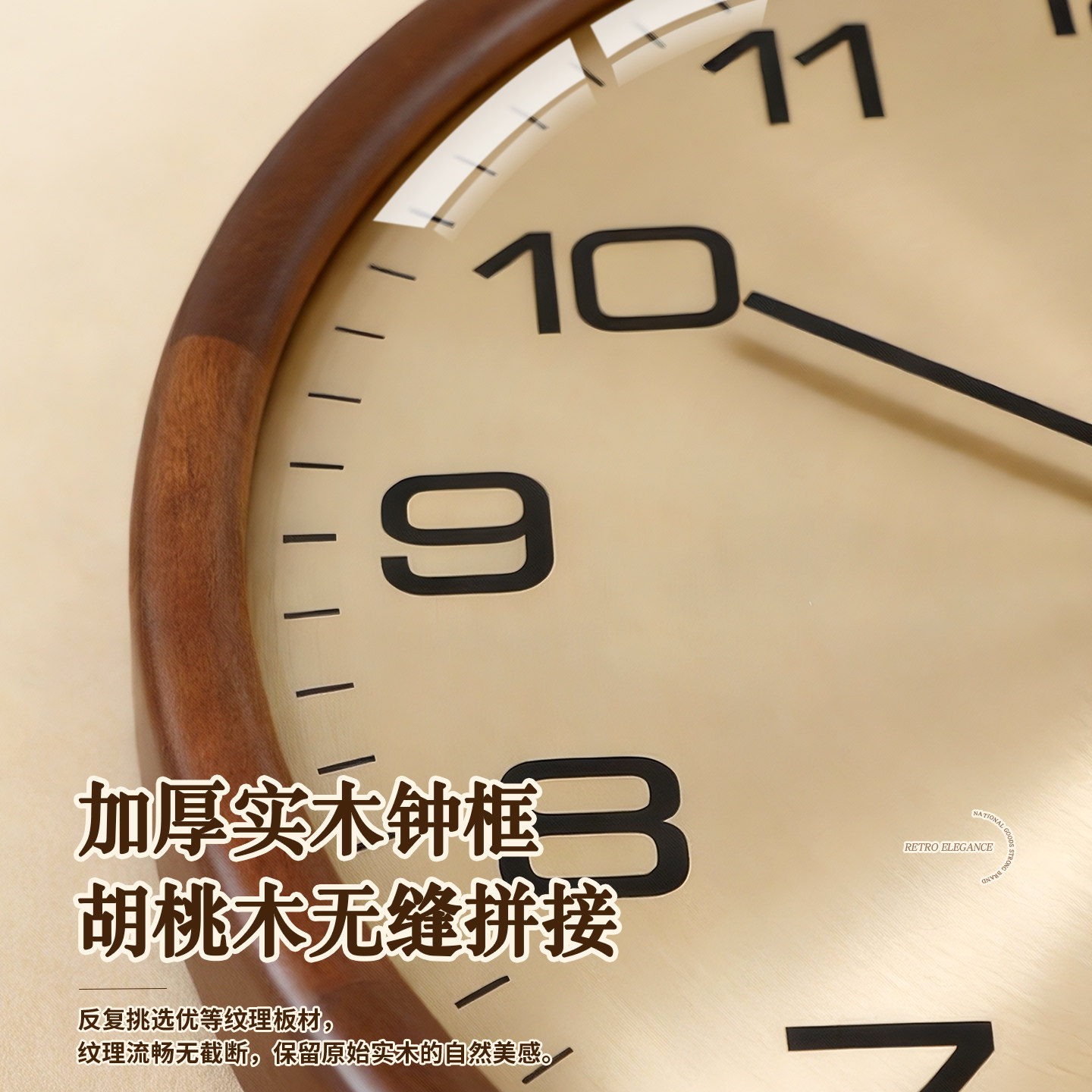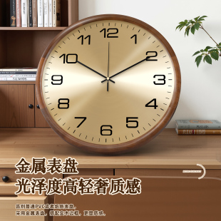 康巴丝实木挂钟现代简约中古静音时钟表客厅新中式 挂墙表 创意美式