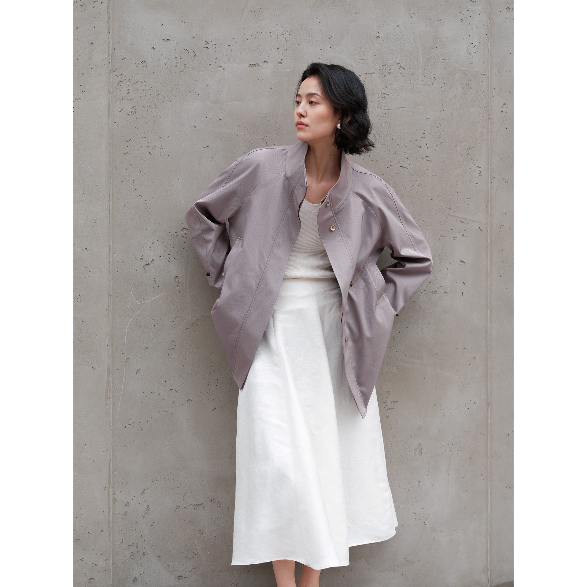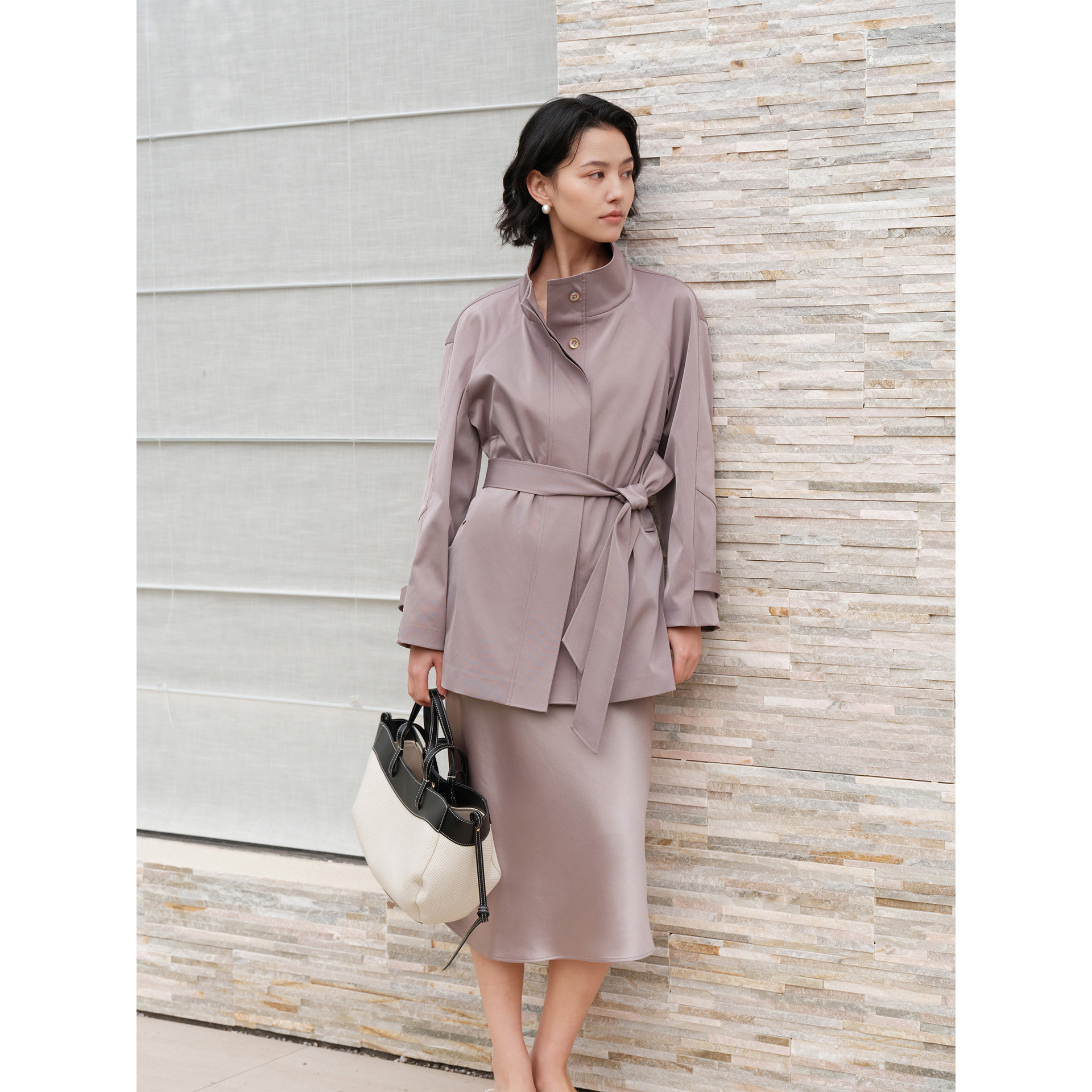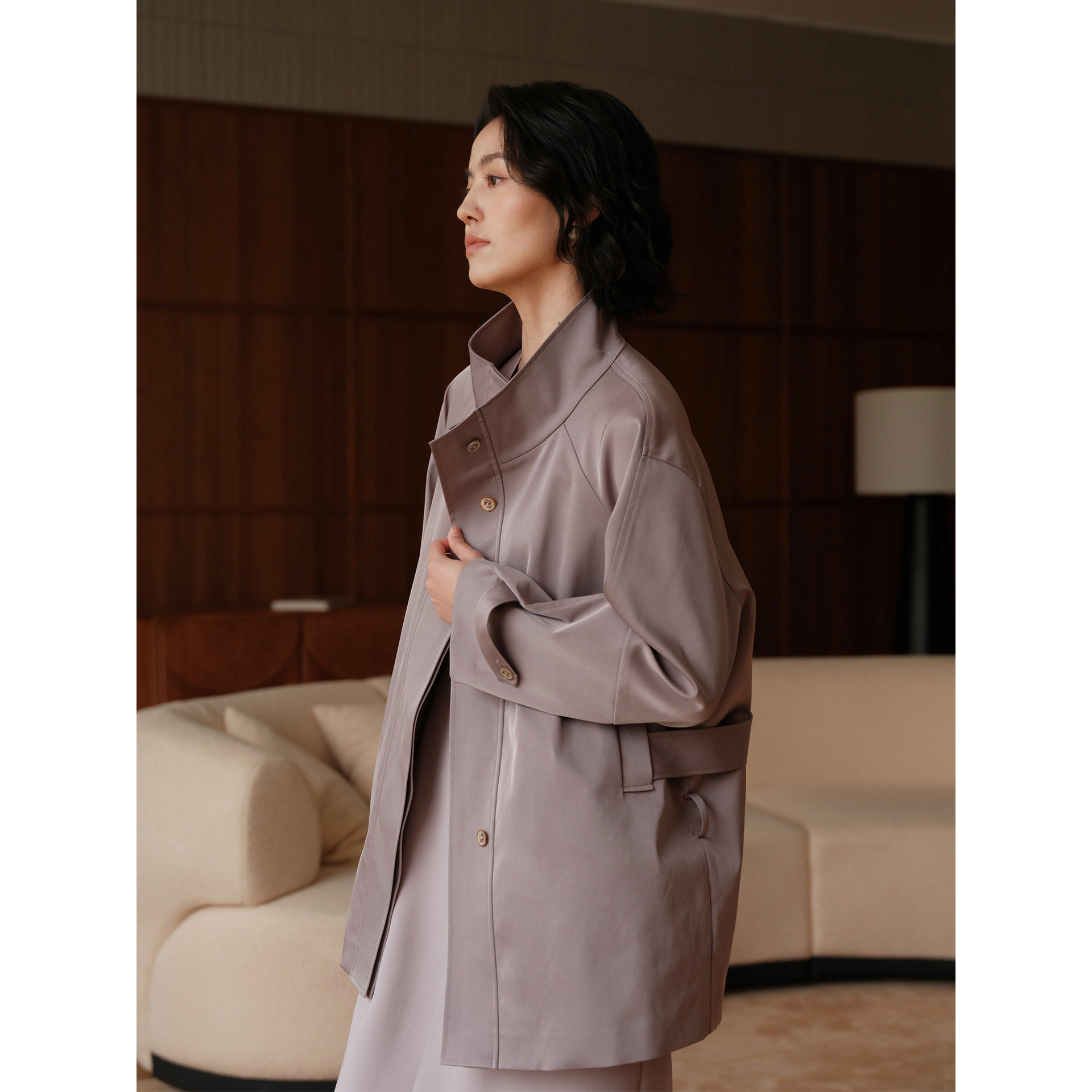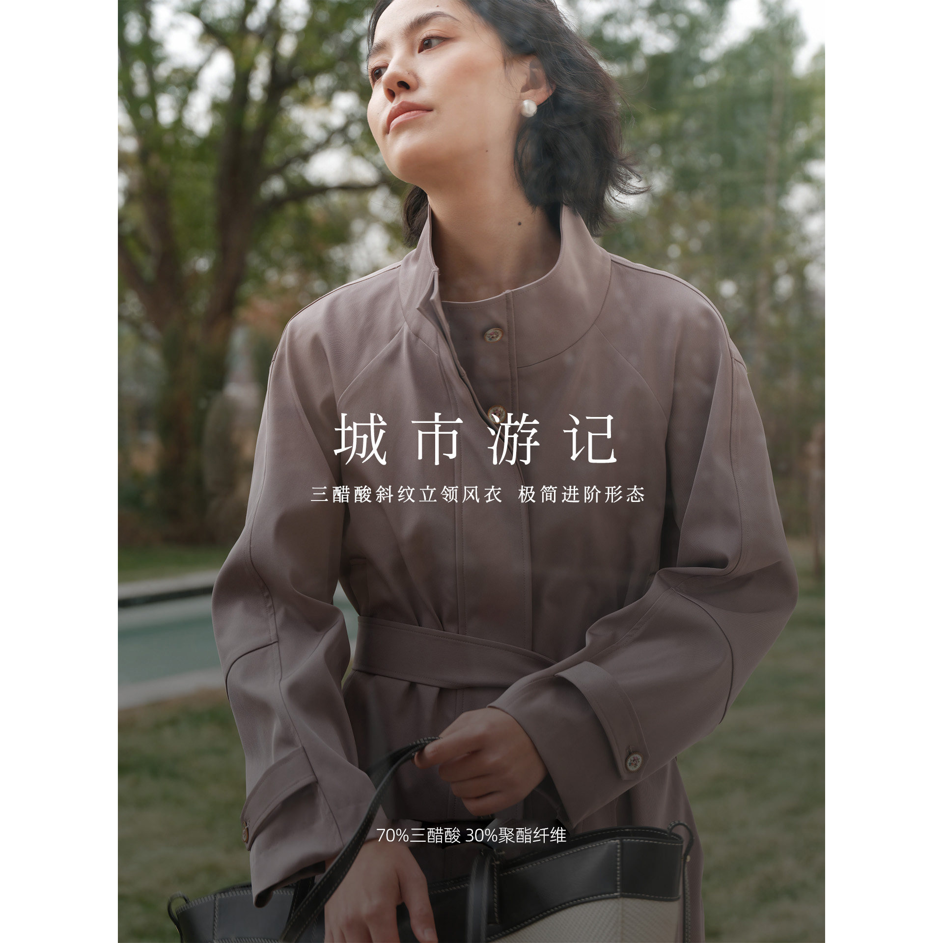 风衣 日本三菱三醋酸斜纹建筑感分割立领插肩袖 芝美日禾 城市游记