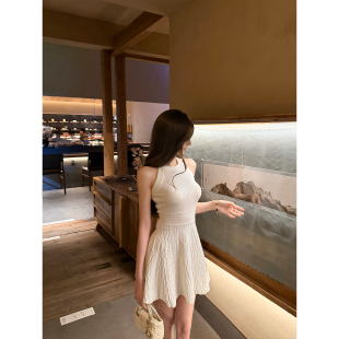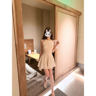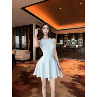 a字裙 挂脖削肩鳄鱼纹针织连衣裙女收腰无袖 CCZEE 梦织安吉莉
