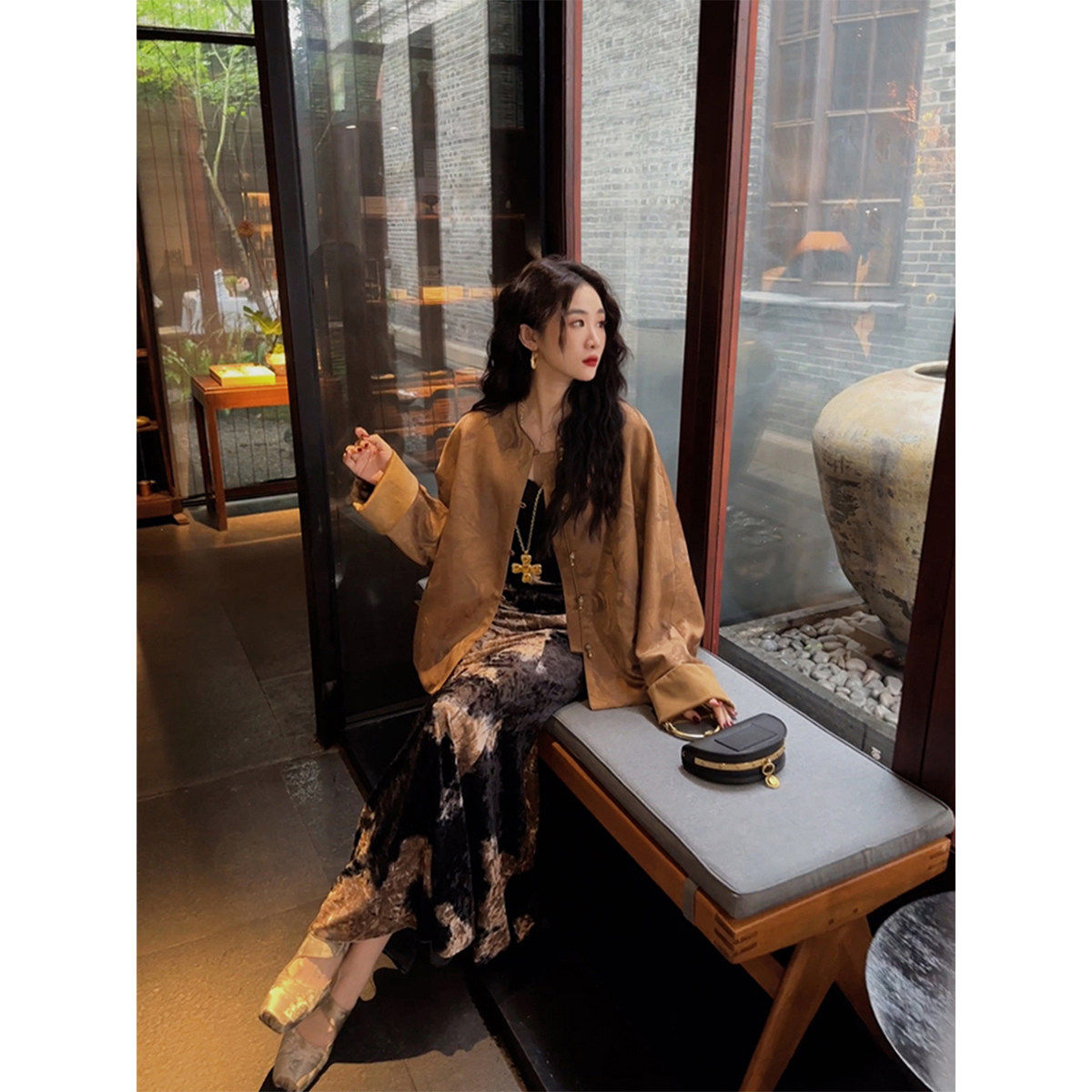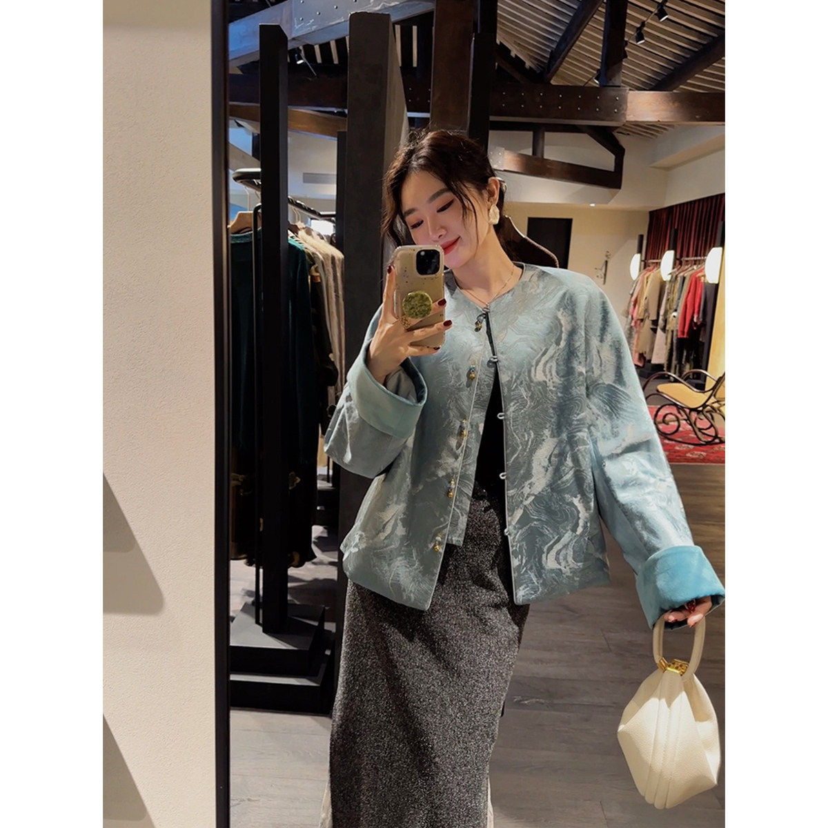 国风新中式 入青山 三吉黑花 外套夹棉服上衣 专柜买手珠珠