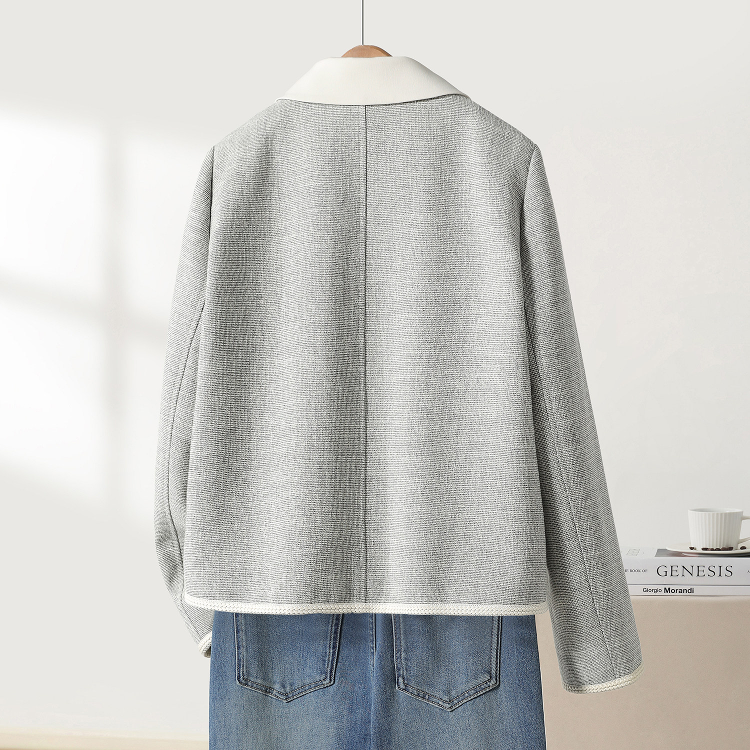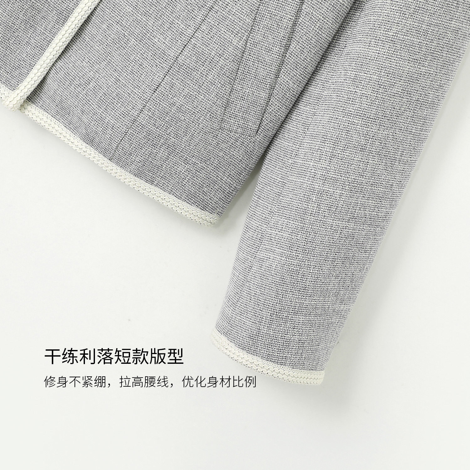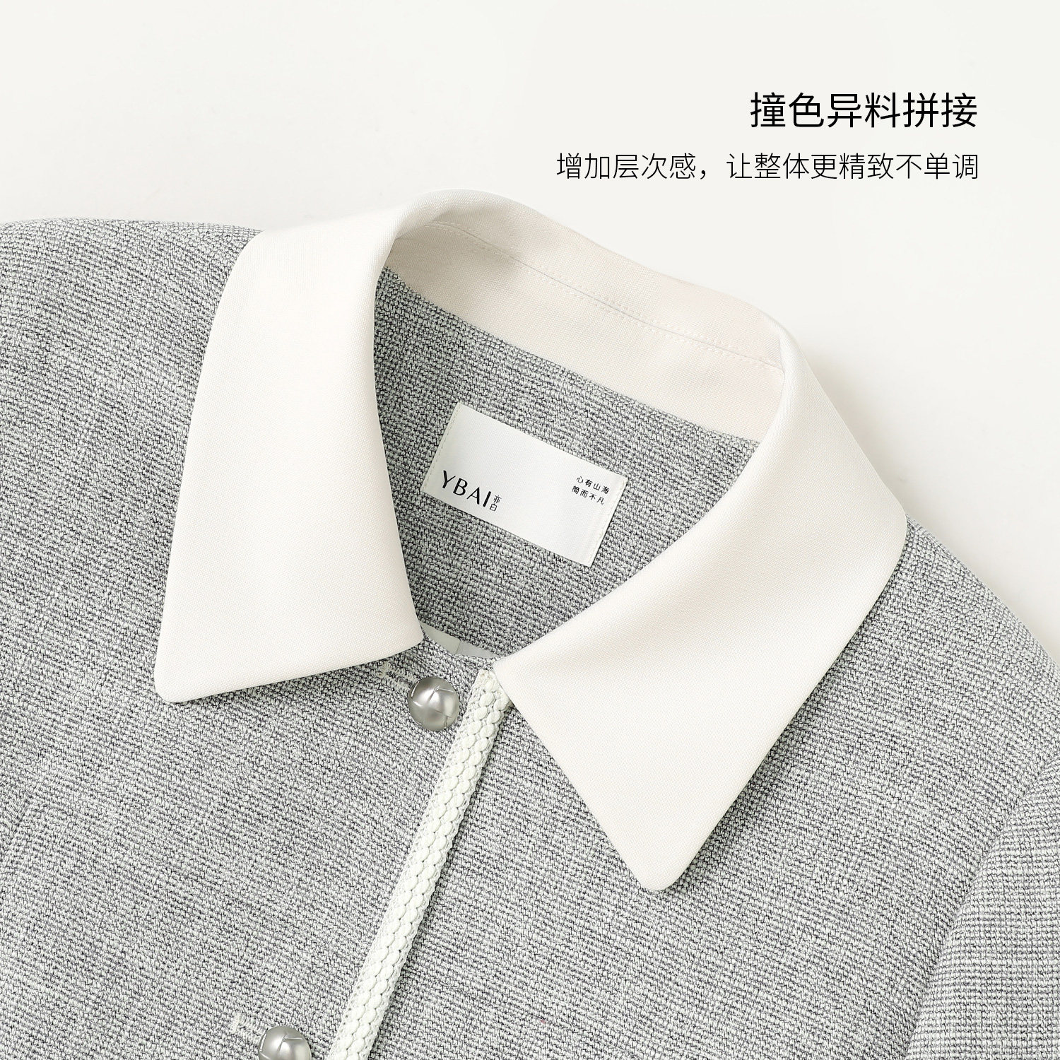 时尚 YBAI 新款 26春季 百搭气质花纱纹理拼接撞色小香风外套女 亦白