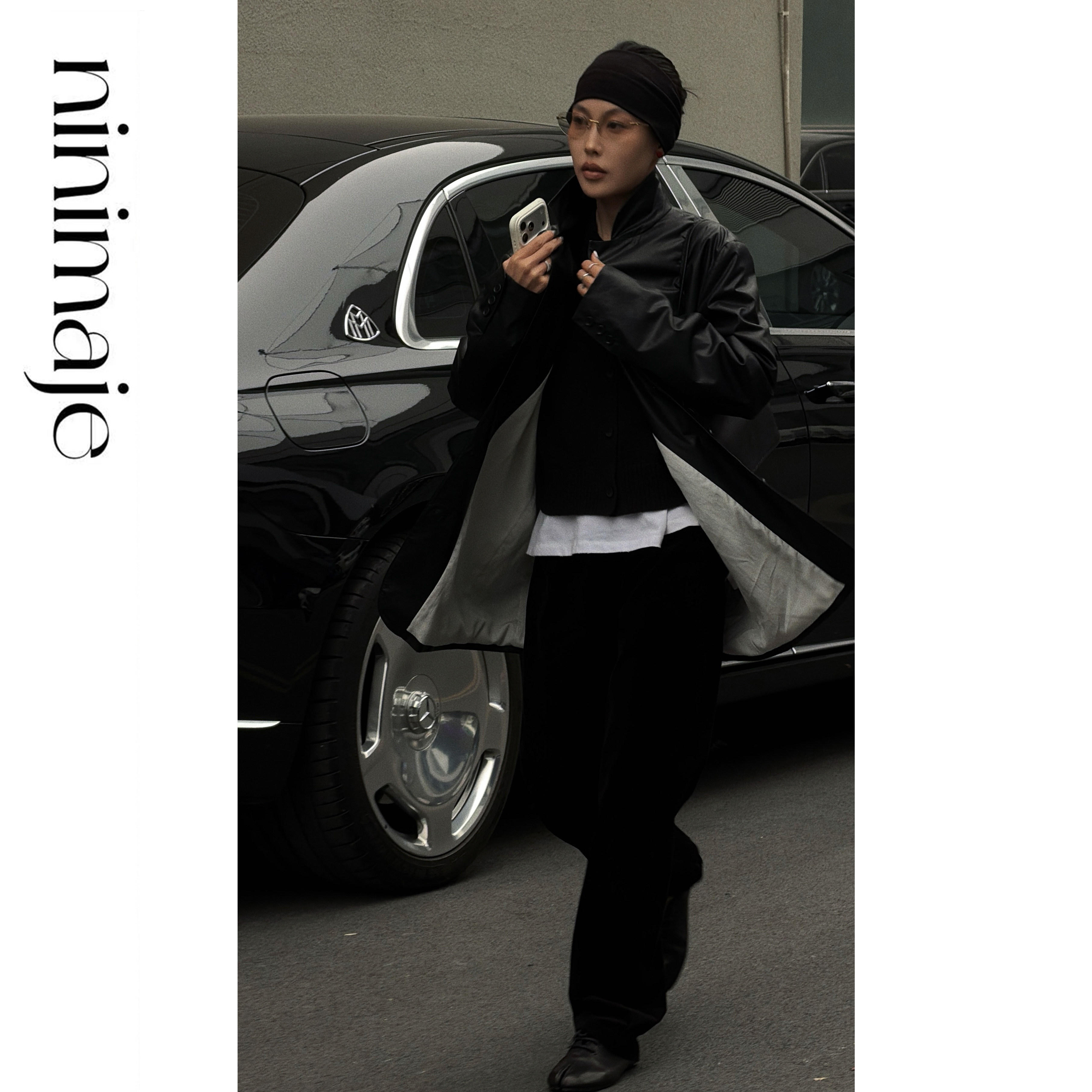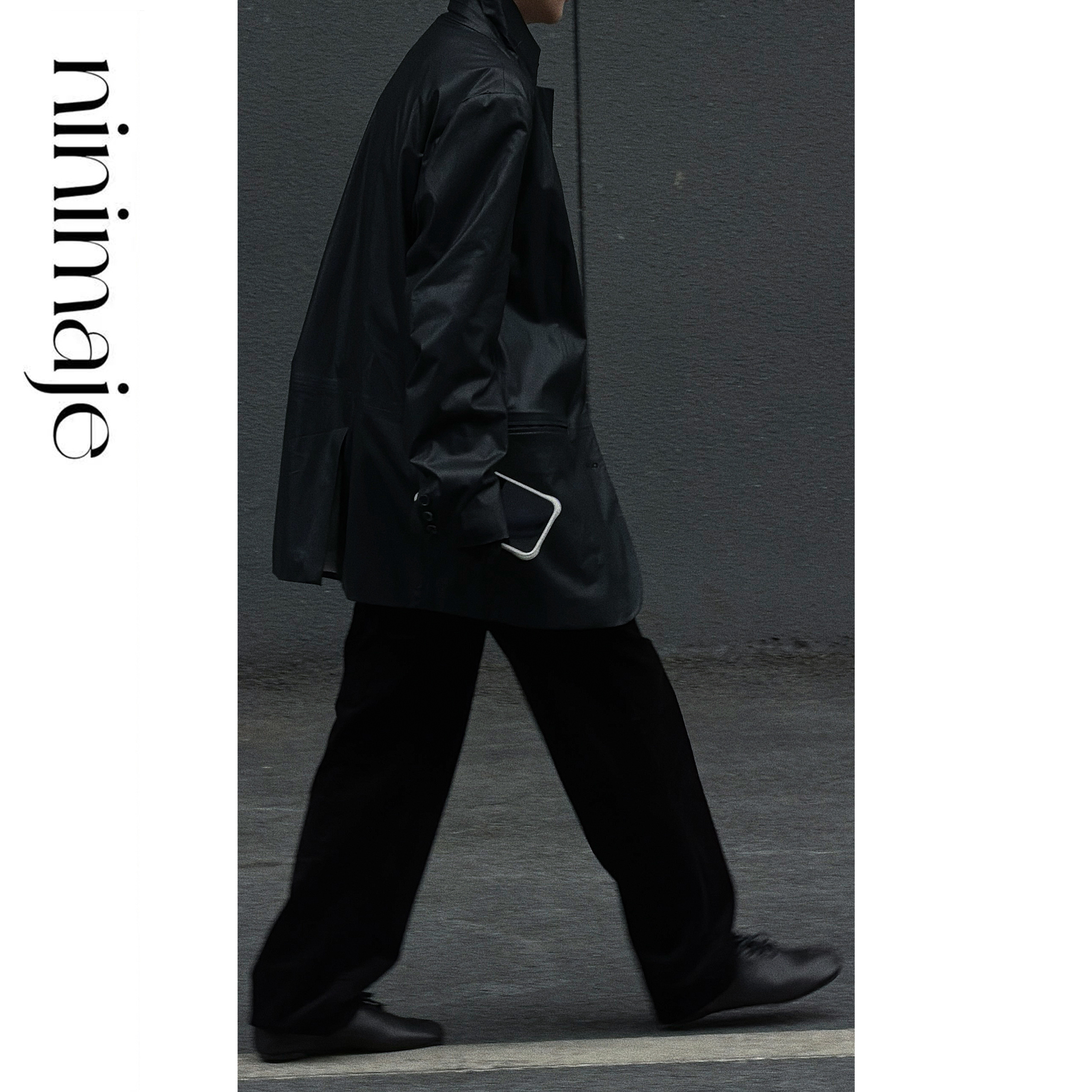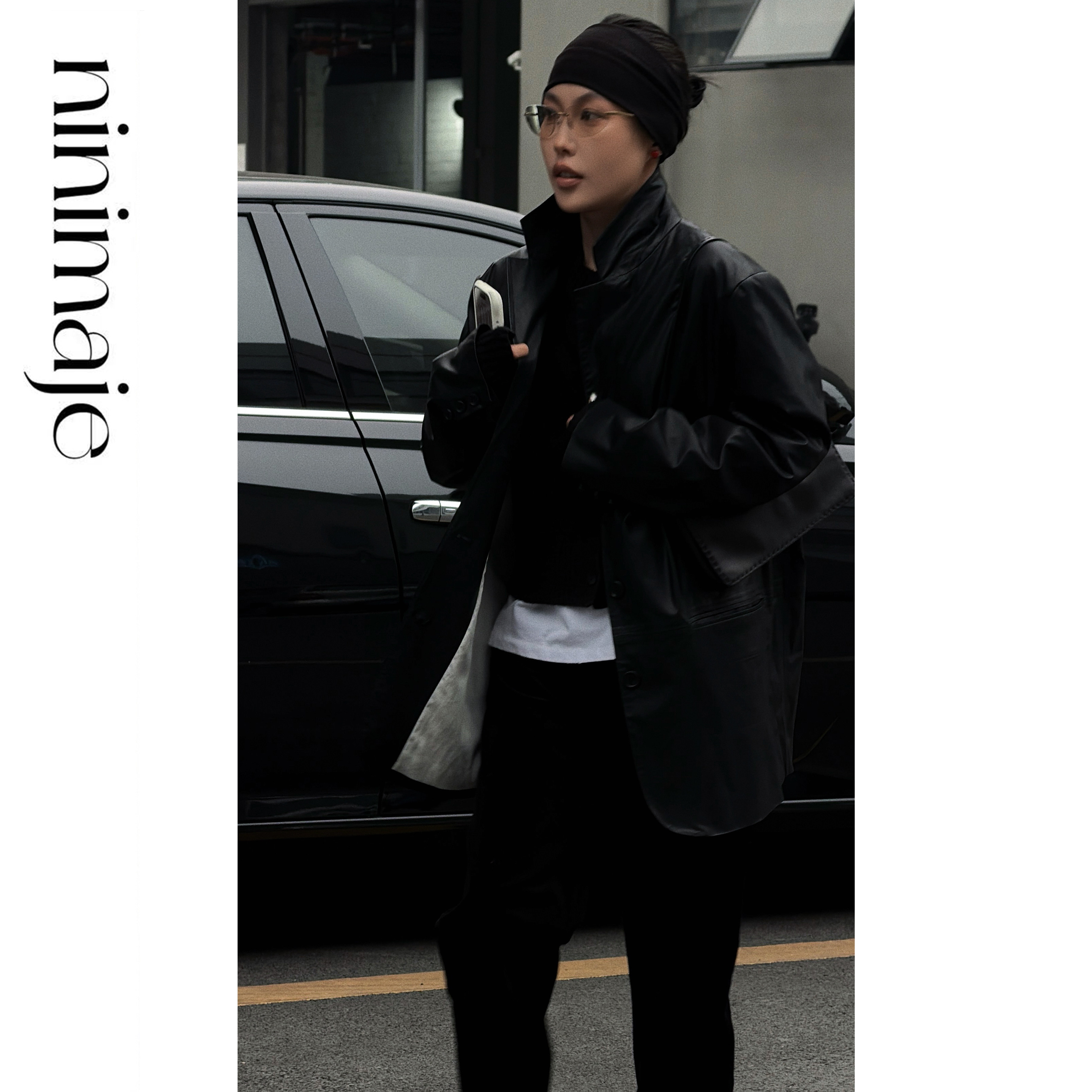 NANBEIBEI南北贝西装 PU皮高定复古口袋纽扣 纸感皮衣外套女春季