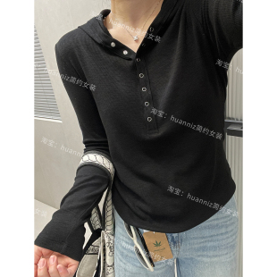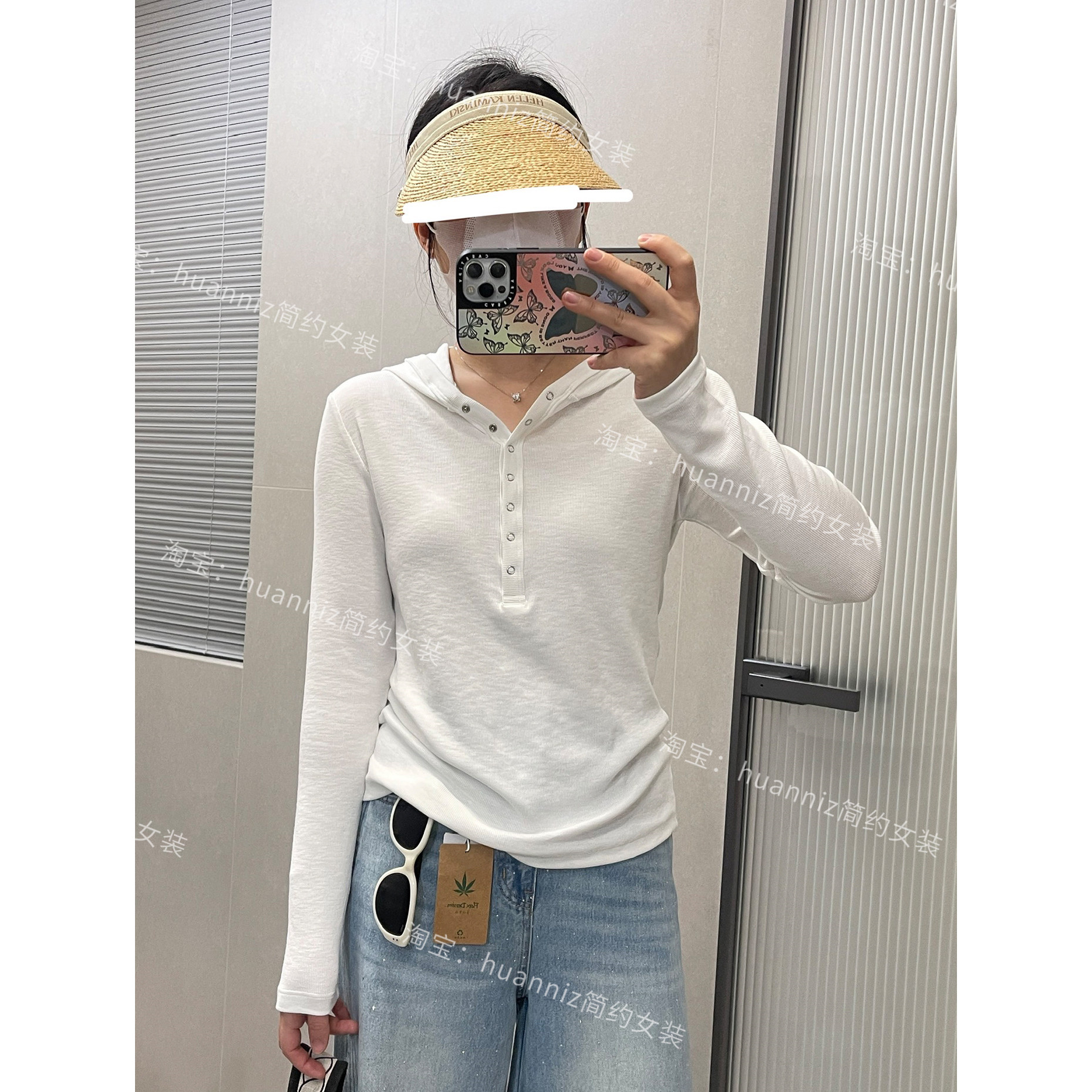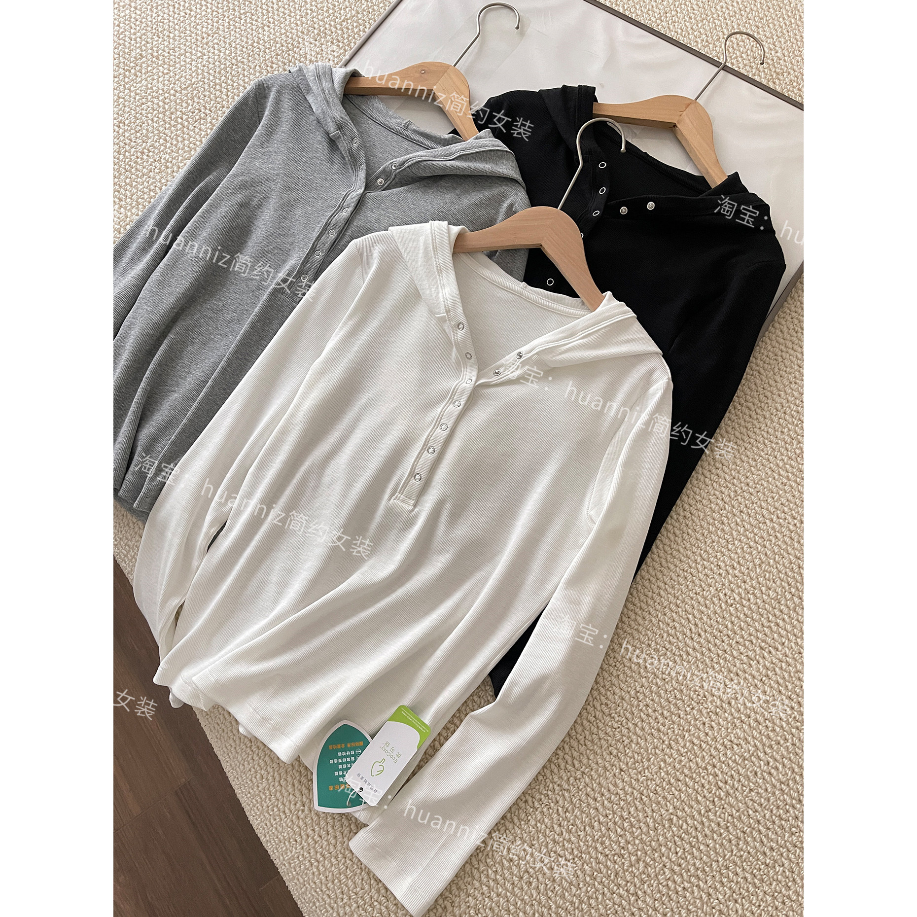 T恤女 竹节优可丝连帽五爪扣亨利T显瘦正肩收腰打底衫 26春季 新款