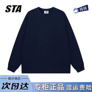STA旗舰店美式 男女纯黑色宽松情侣打底内搭卫衣 潮牌重磅纯棉长袖