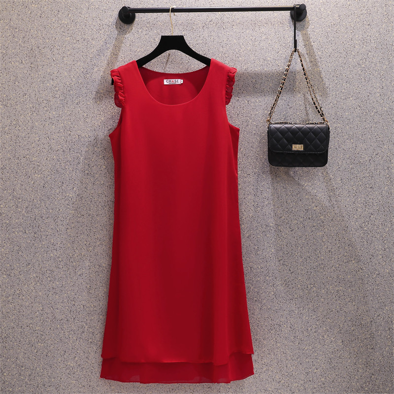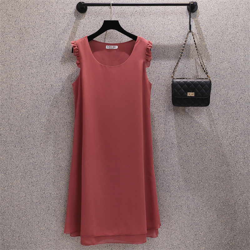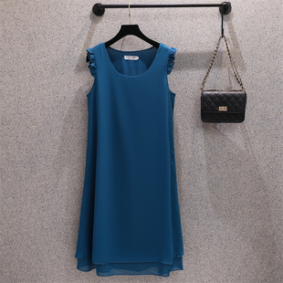 吊带仙女中长a字裙 t恤薄款 大码 连衣裙夏胖mm宽松显瘦高端雪纺无袖