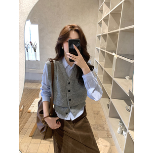 气质内搭女叠穿背心打底百搭 衬衫 法式 V领木耳花边丝滑缎面无袖