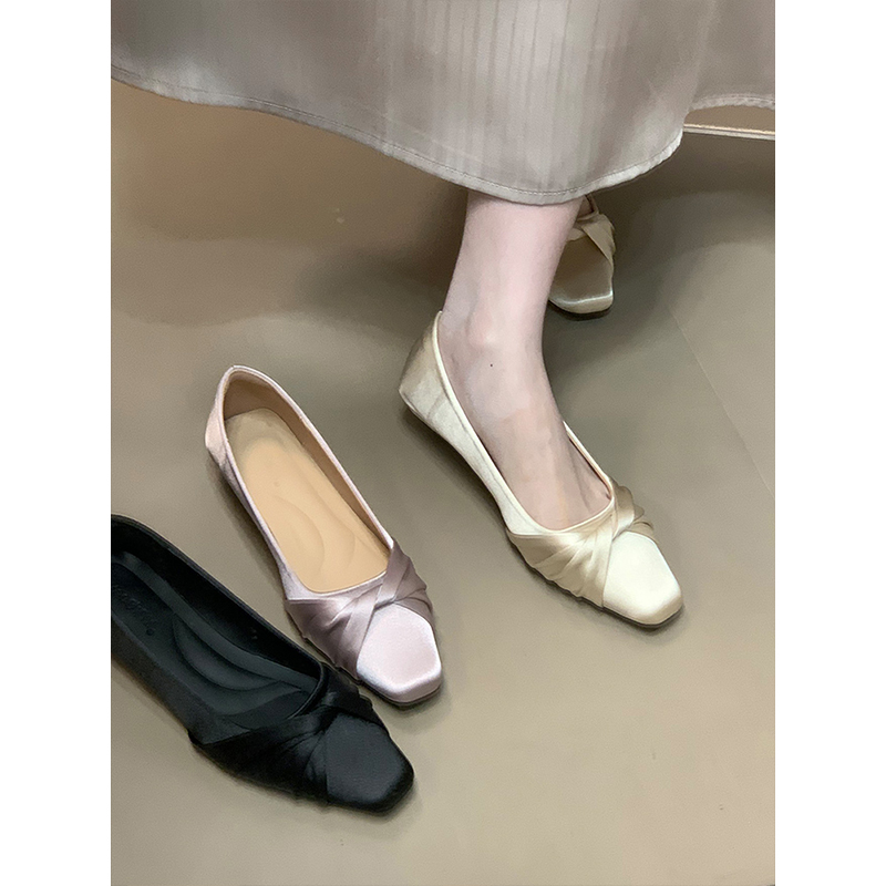 oceanone绝美不累脚浅口平底单鞋 坡跟 女2025年配裙子通勤工作鞋