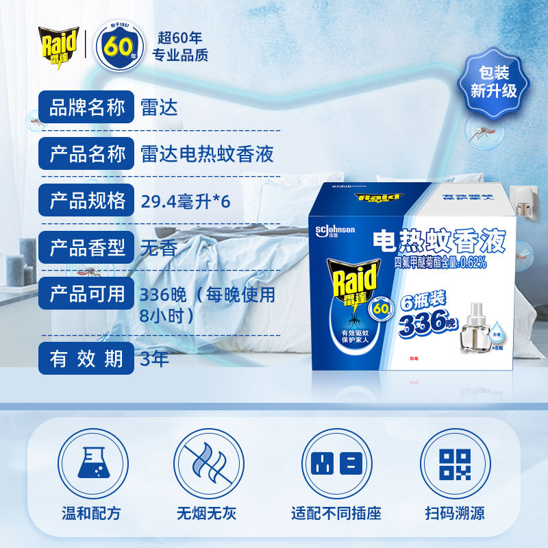 雷达电热蚊香液插电式 补充液无香型驱蚊液 驱蚊器家用套装