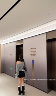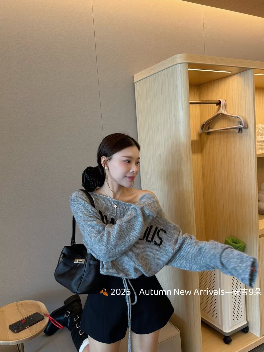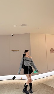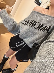 女下摆抽绳子收腰毛衣上衣 斜肩字母针织衫 五折福利 新款