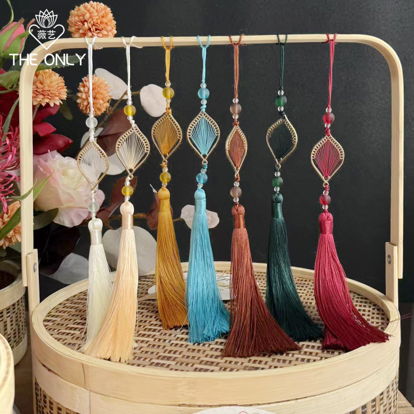 薇艺 饰材料 中秋节花好月圆流苏花篮配饰创意花艺花盒礼品装