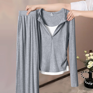 早秋运动两件套H 新款 班尼路S&K系列灰色假两件收腰套装 女2025秋季