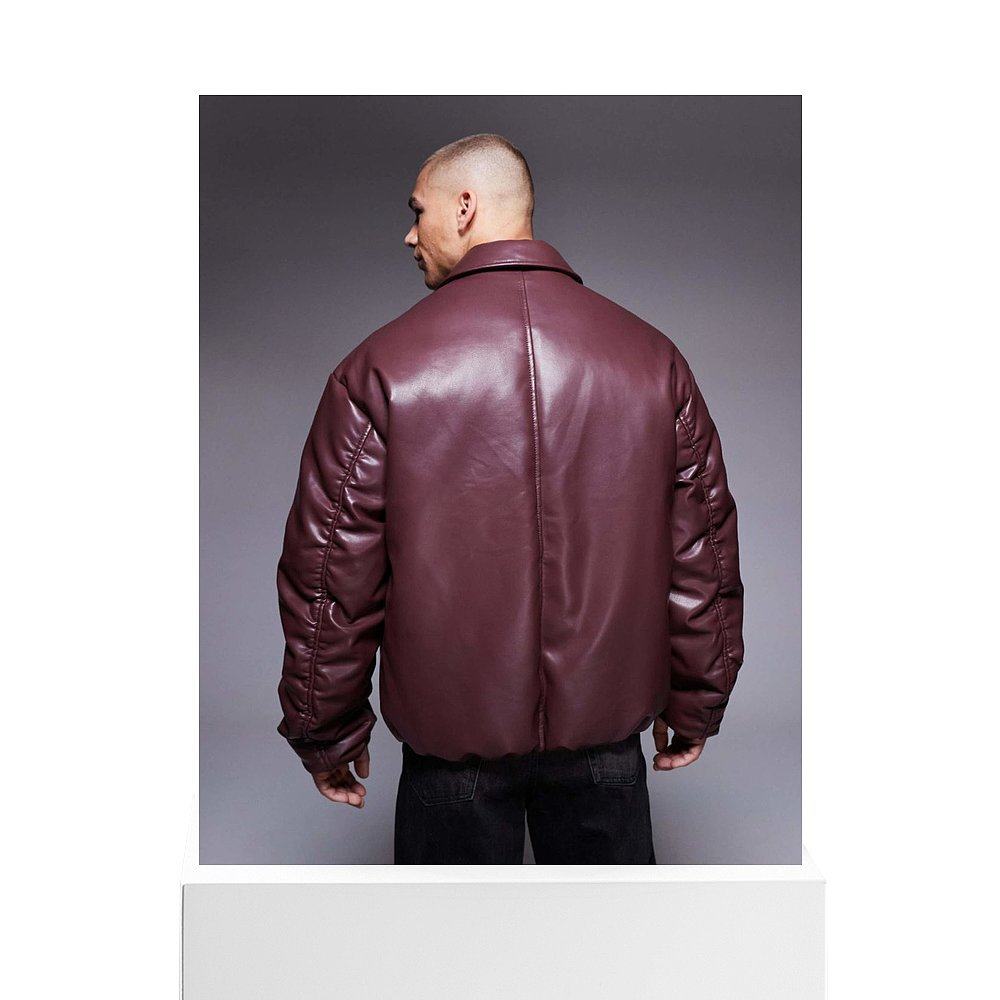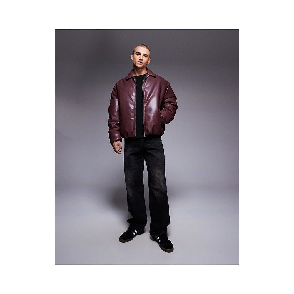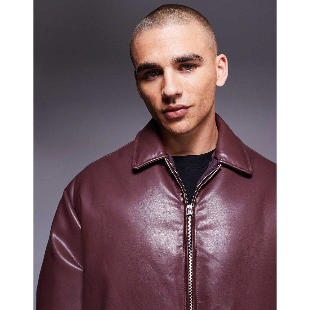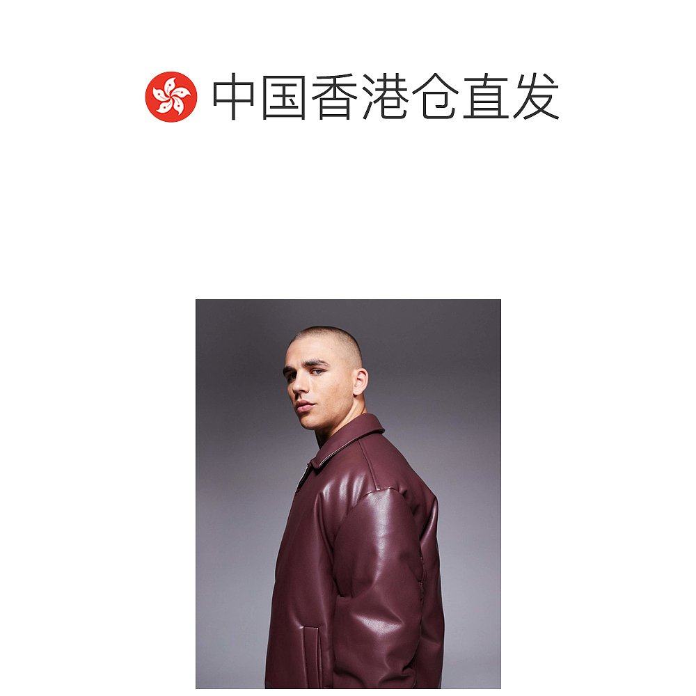 舒适时尚 香港直邮ASOS red红色 设计仿皮酒红色短夹克 男士