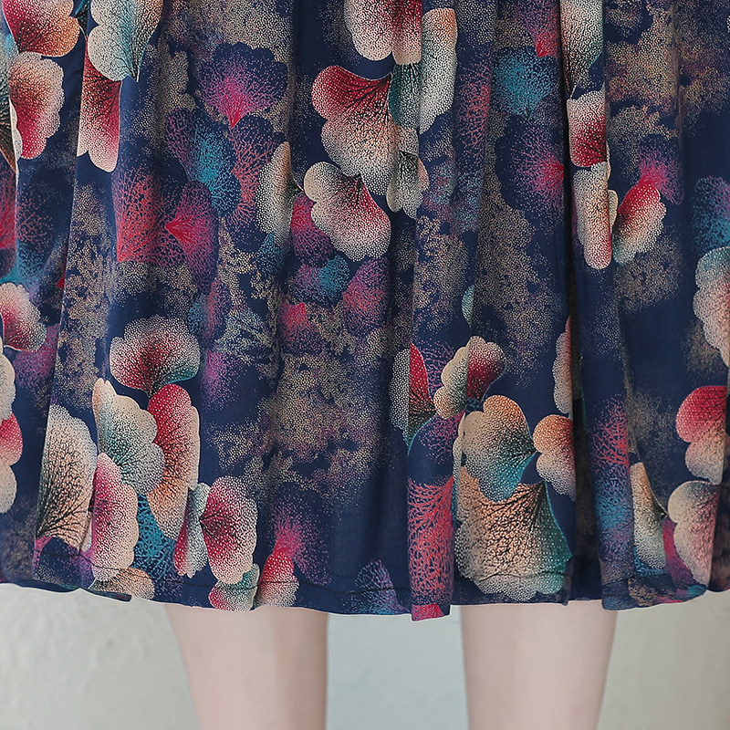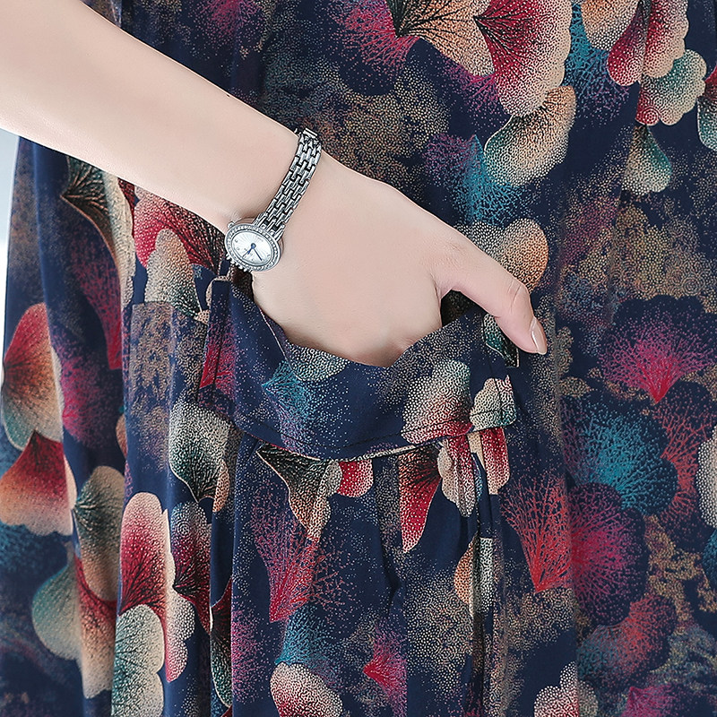 女装 高贵胖妈妈装 夏装 棉绸连衣裙中长款 透气裙子 短袖 中老年人大码