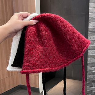 2025秋冬抽绳针织堆堆帽女百搭日系大头围显瘦包头冷帽网红毛线帽