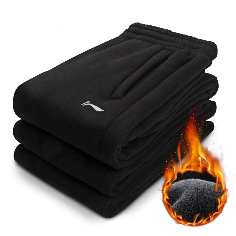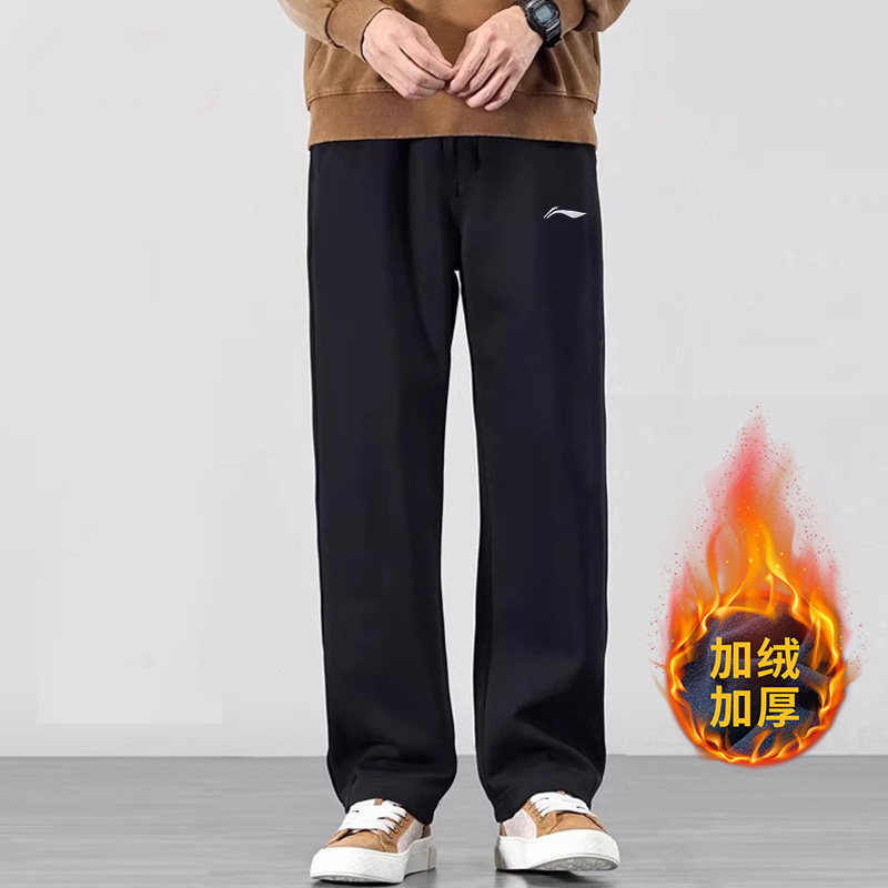 防风情侣休闲束脚弹力运动裤 李宁冬季 男保暖直筒卫裤 加绒长裤 新款