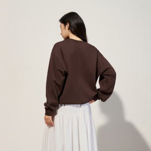 OCHIRLY欧时力 T恤女流行秋冬 100%新疆棉徽章印花卫衣长袖