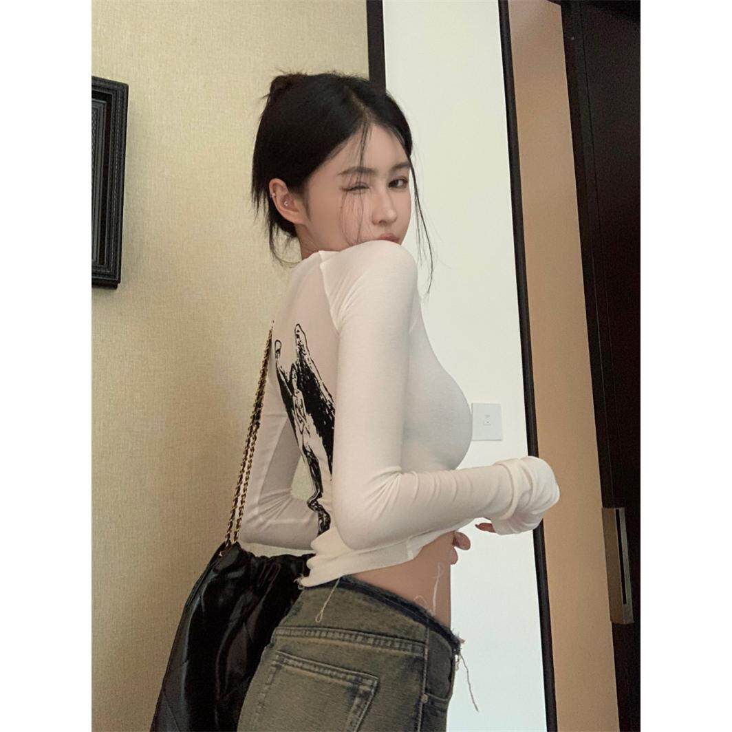 t恤防晒罩衫 内搭打底衫 女夏季 修身 后背透明网纱上衣 薄款 辣妹长袖