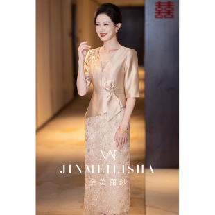 婚宴妈妈礼服香槟色2026新款 场合订婚敬酒喜婆婆连衣裙 高级感正式