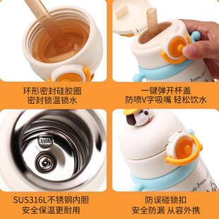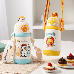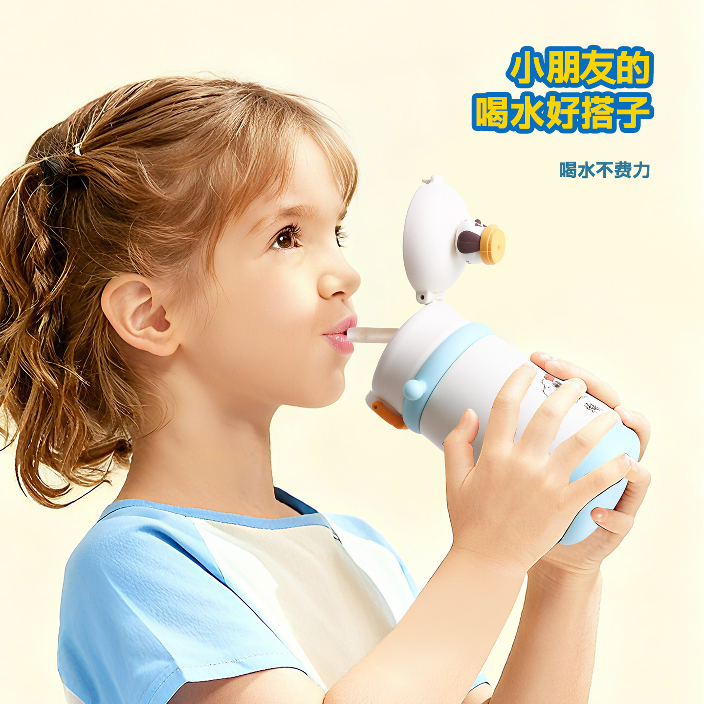 B.Duck小黄鸭400ml儿童咬吸保温杯学生水杯316带刻度水壶吸管杯