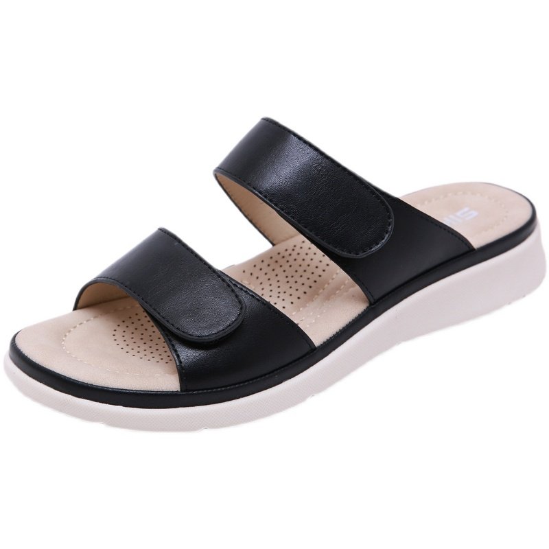 女性度假海滩尼龙搭扣按摩海绵大尺寸拖鞋 夏季 女性凉鞋