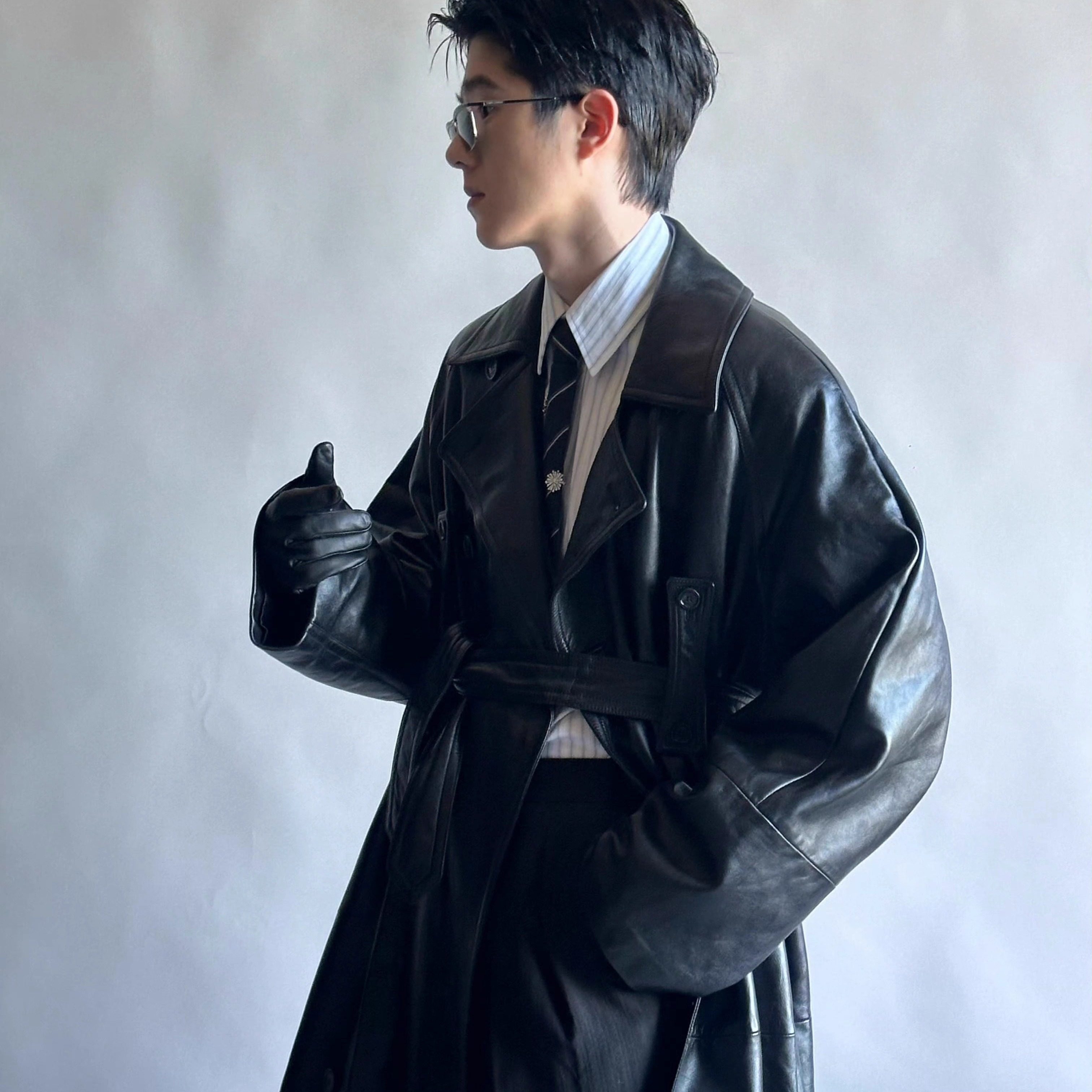 OaOO廓形翻领拉链皮衣bomber飞行夹克秋冬复古工装 机车服宽松显壮
