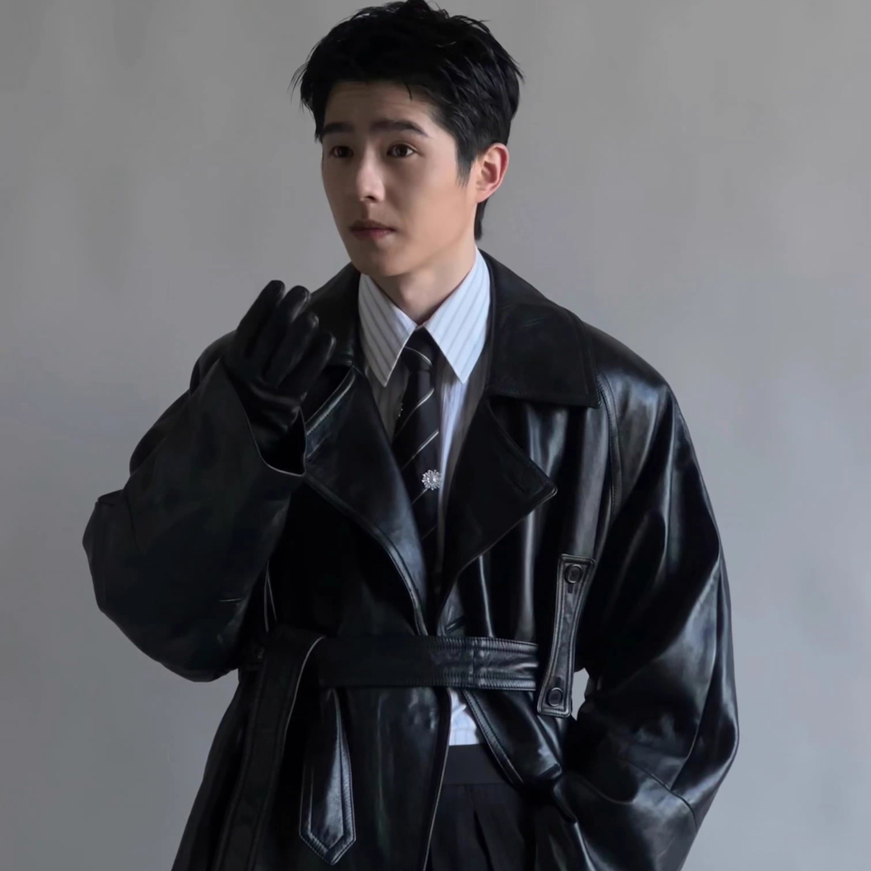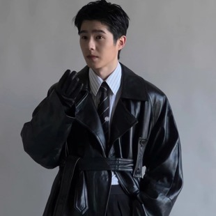 2025秋冬新款 痞帅外套潮牌美拉德皮衣男休闲加绒机车服皮夹克 男士