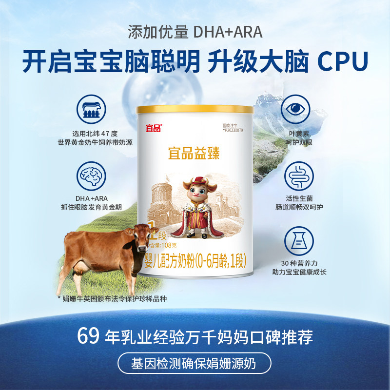 宜品益臻娟姗牛1段新生儿婴幼儿宝宝配方牛奶粉0 6个月108g试用装