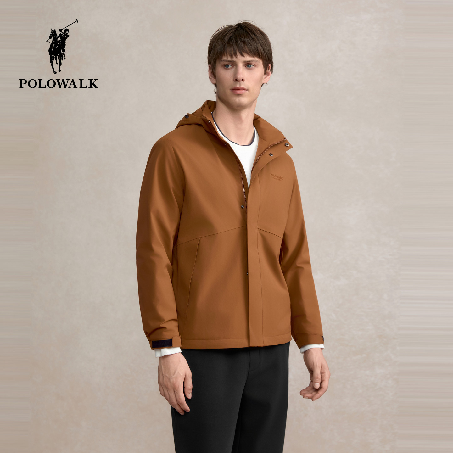 简约户外通勤连帽加绒夹克男装 新品 外套 夹克2025冬季 POLOWALK男式