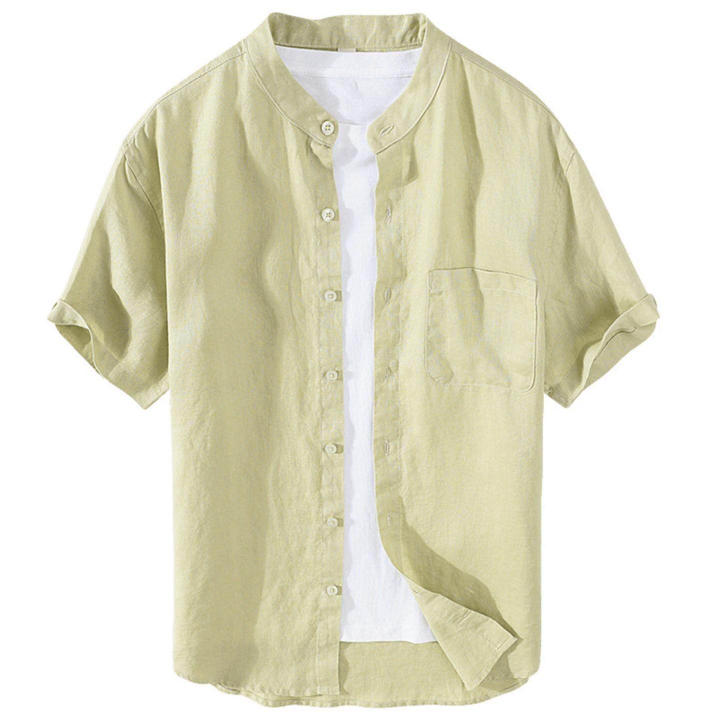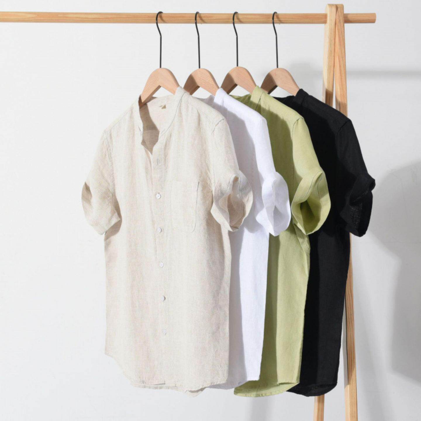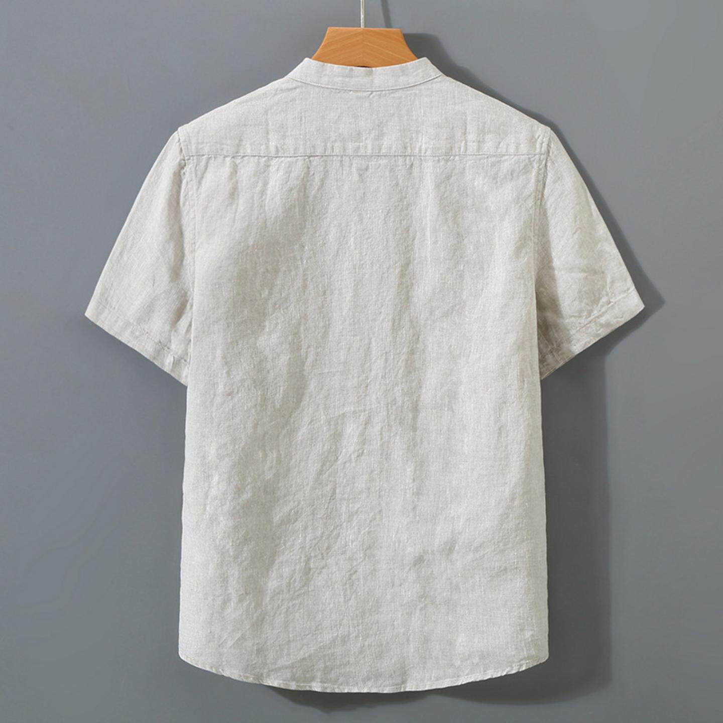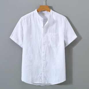 夏季 短袖 麻料衣服中国风复古休闲立领上衣春秋 男士 925纯亚麻衬衫
