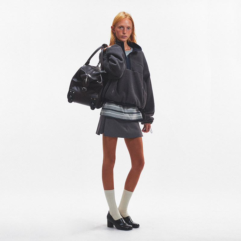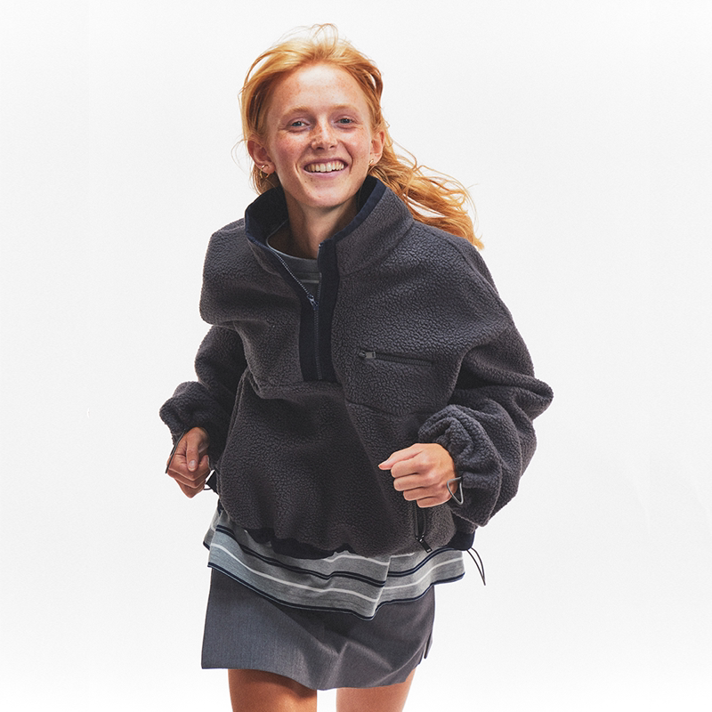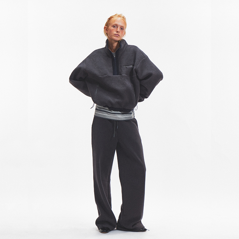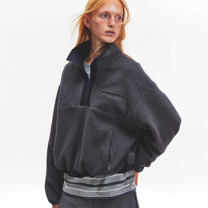 Ahhh 拼色高立领双面摇粒绒宽松半拉链套头卫衣外套秋冬 复古短款