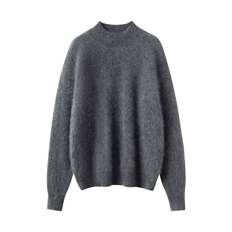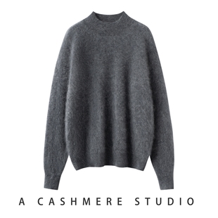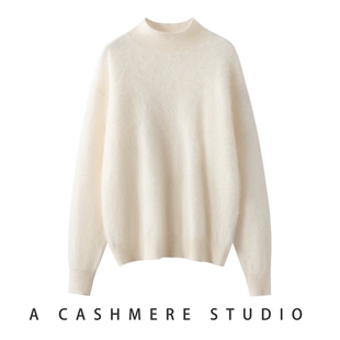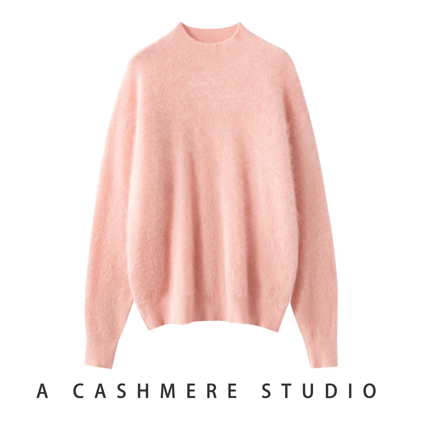 2025秋冬新款 女拉绒半高领上衣纯色百搭宽松毛衣打底 桑蚕丝羊绒衫