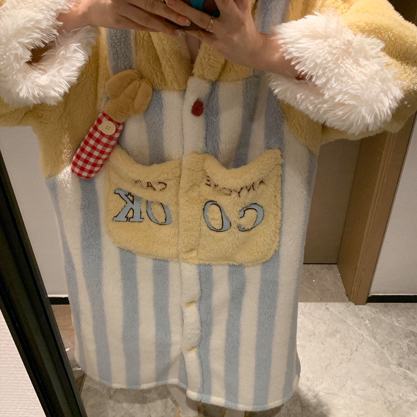 半边绒刺绣ins家居服套装 yso 新款 睡衣女冬季 花花梦园