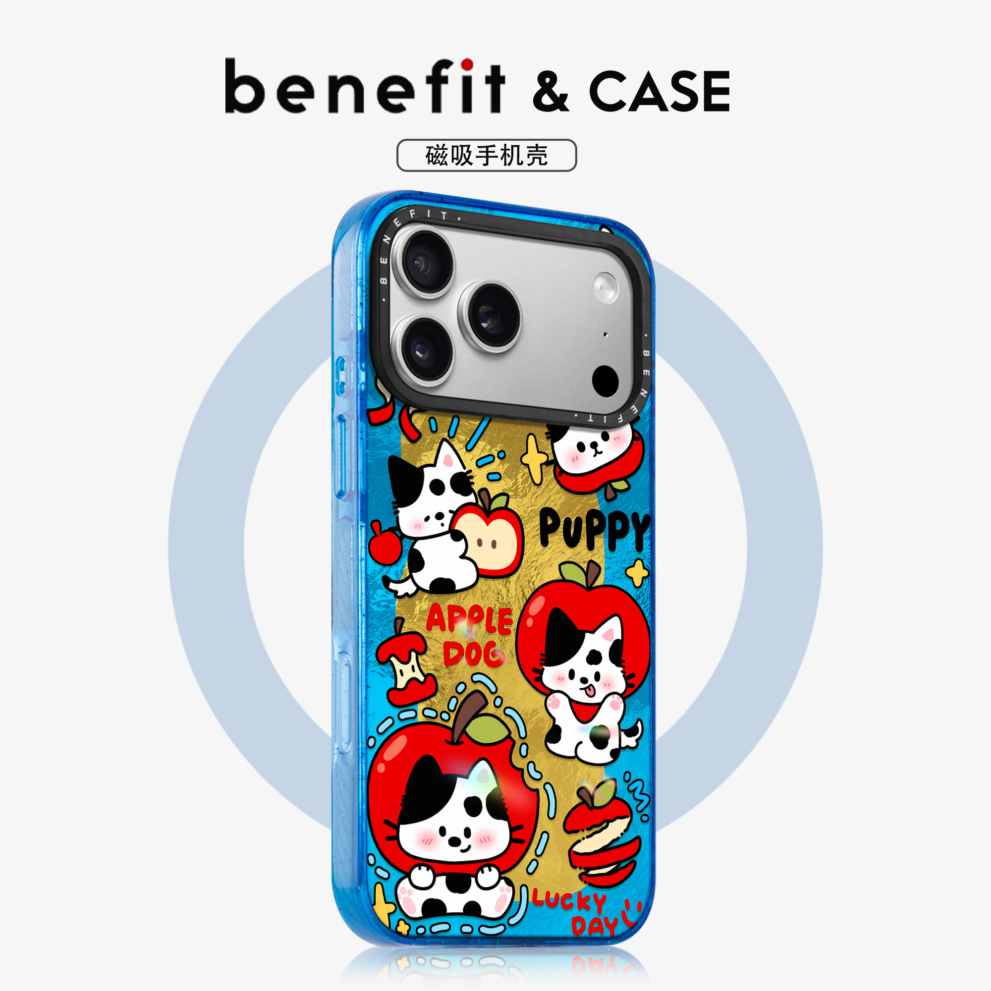 benefit卡通可爱苹果奶牛猫适用于iphone17promax苹果16PRO晶盾磁吸手机壳15新款 13防摔套14冰川纹12彩色边框
