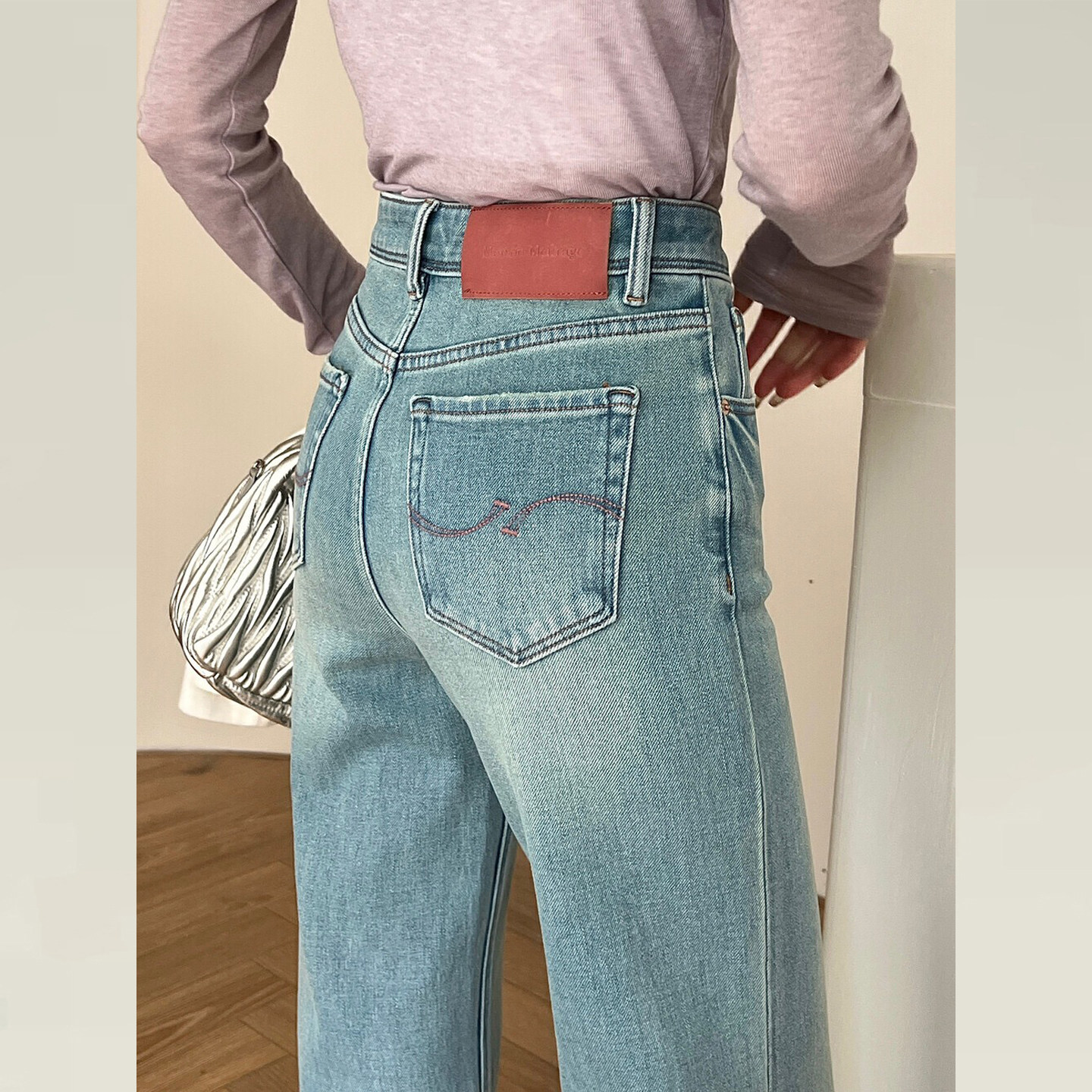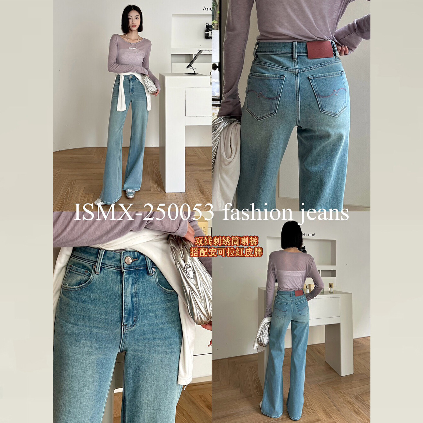型超好看 版 裤 子女款 ISMX浅蓝色牛仔裤 高腰显瘦微喇叭裤 早春新款