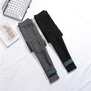 布贴高腰外穿小脚女 修补程式 专柜2024秋冬加绒加厚纯棉内搭裤 韩版