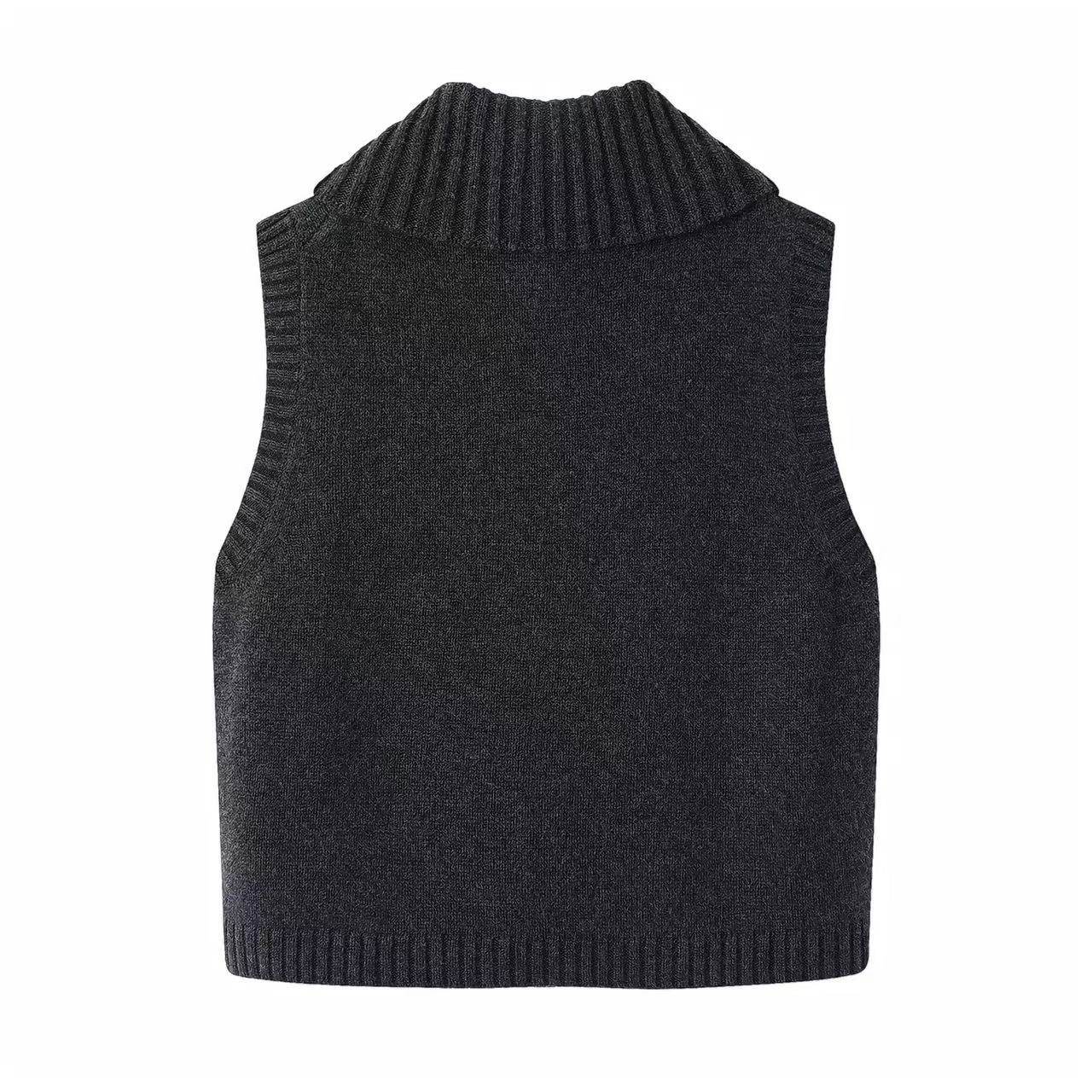 半拉链针织马甲背心翻领无袖 小艾 新款 秋冬季 针织坎肩女 2025女装