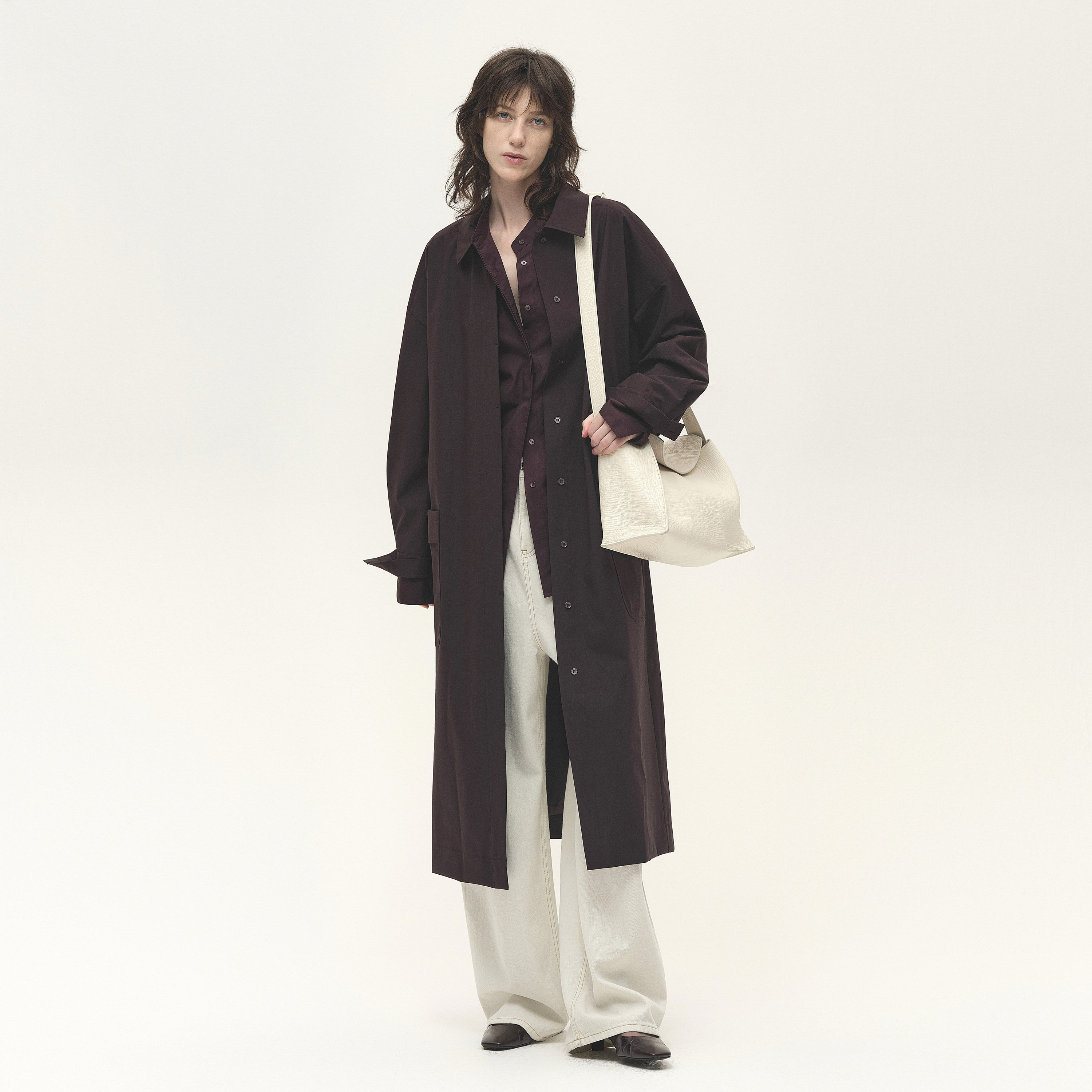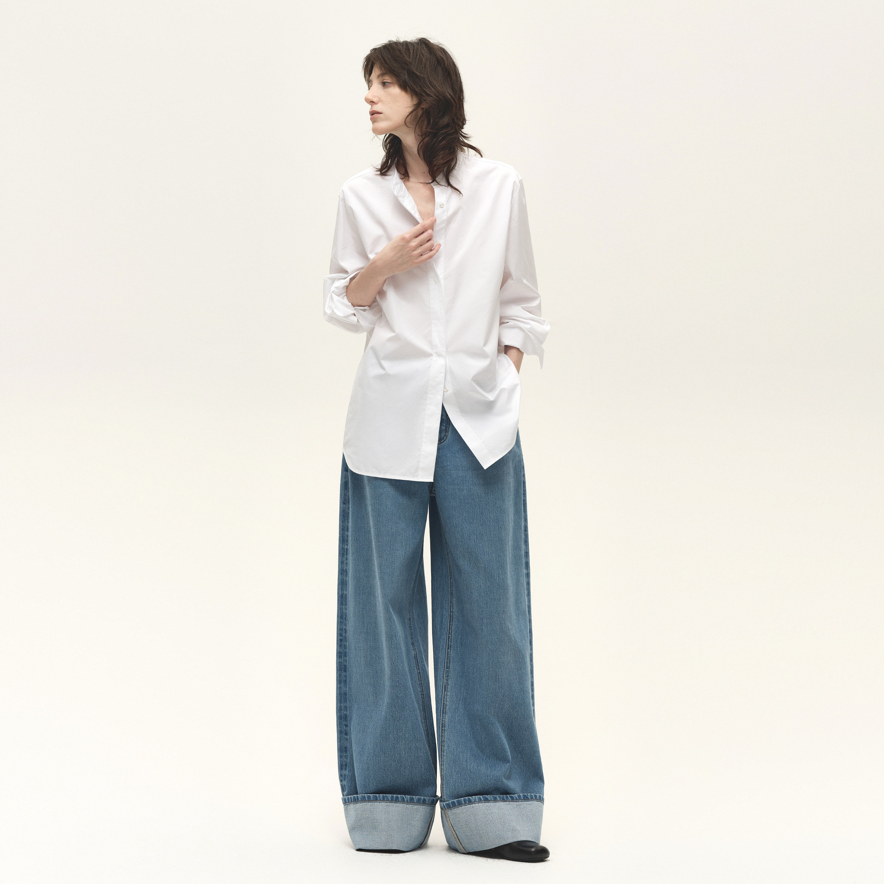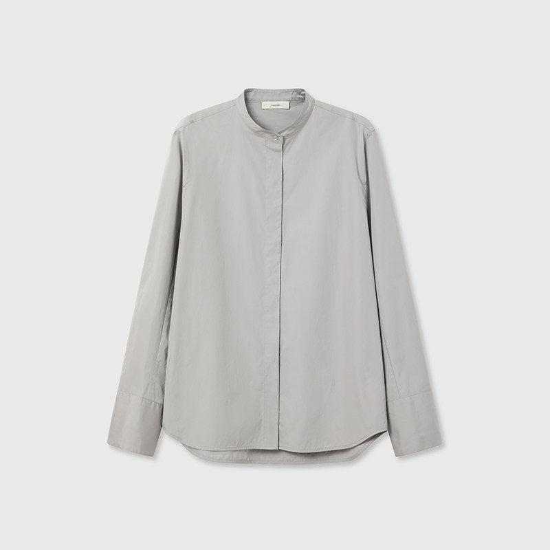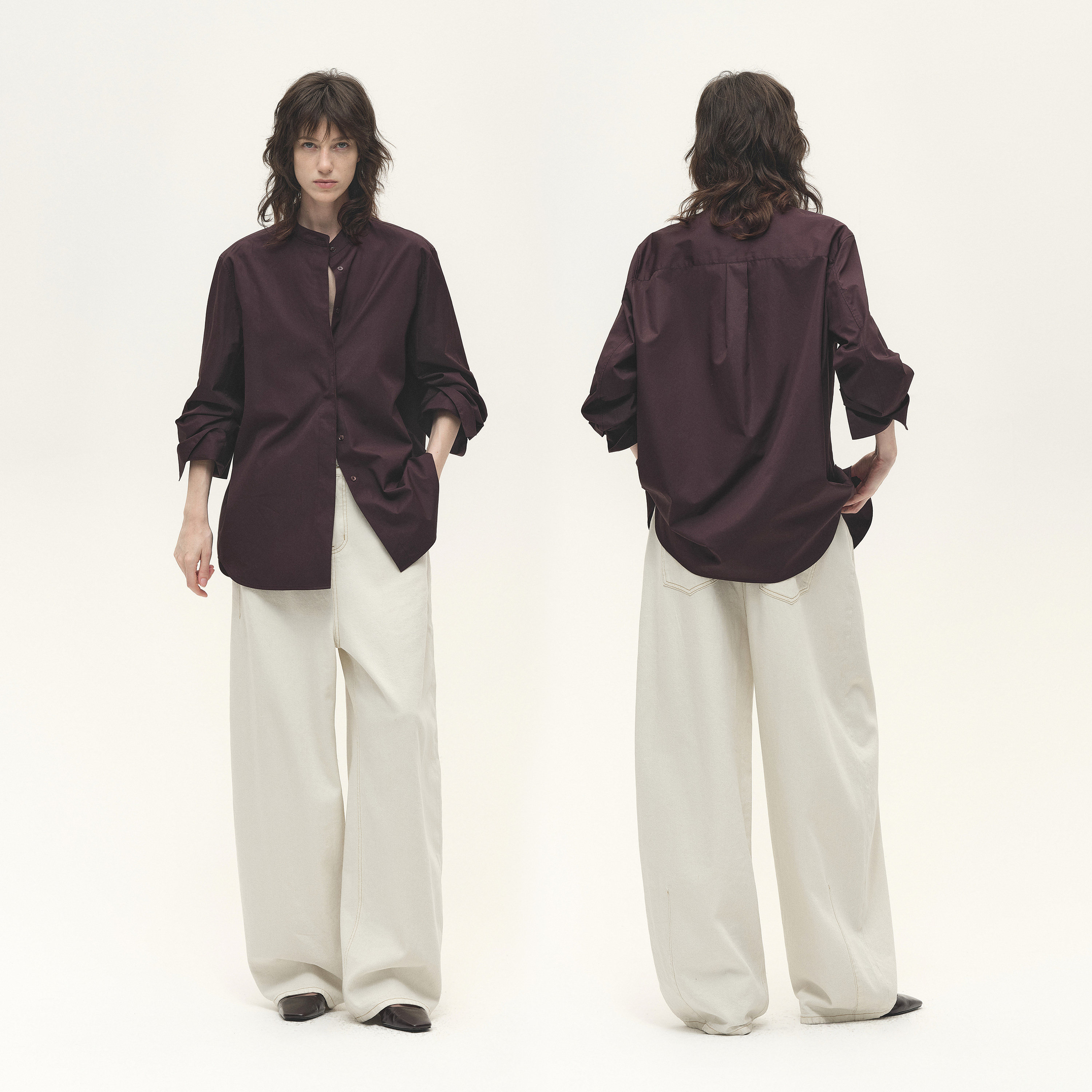 女100%棉衬衣秋季 衬衫 56256 立领长袖 白弓極简设计感中式